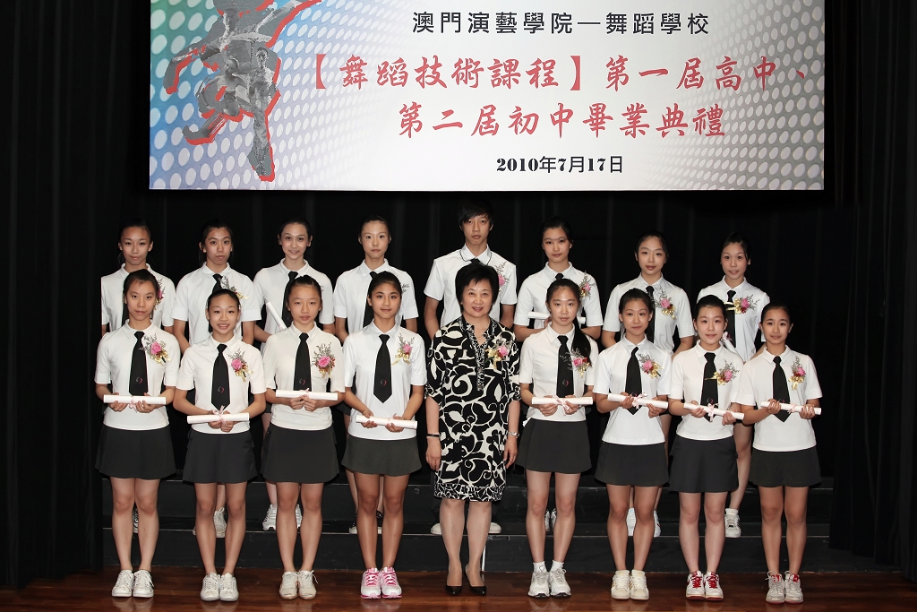 文化局澳門演藝學院舞蹈學校早前為舞蹈技術課程第一屆高中、第二屆初中學生舉行畢業典禮。文化局副局長王世紅,澳門演藝學院院長梁曉鳴、舞蹈學校校長張毅、音樂學校校長周游、戲劇學校校長李宇樑,以及舞蹈學校藝術指導應萼定、中文科顧問邱子維及英文科顧問楊秀玲等出席。