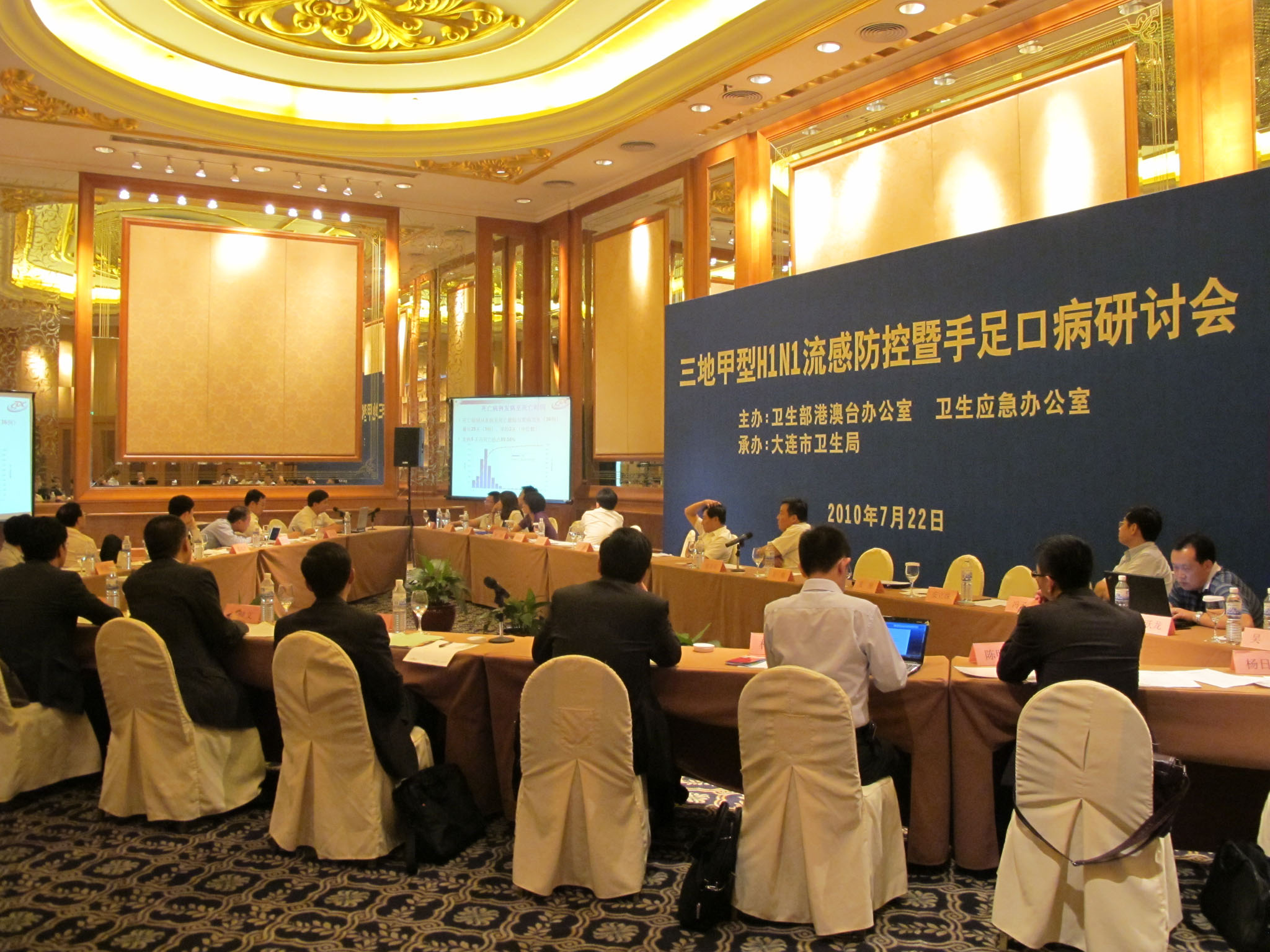 由國家衛生部舉辦的《三地甲型H1N1流感防控暨手足口病研討會》22日在大連舉行,國家衛生部衛生應急辦梁萬年主任、香港衛生署衛生防護中心曾浩輝總監、澳門衛生局鄭成業副局長分別率團參加了會議。