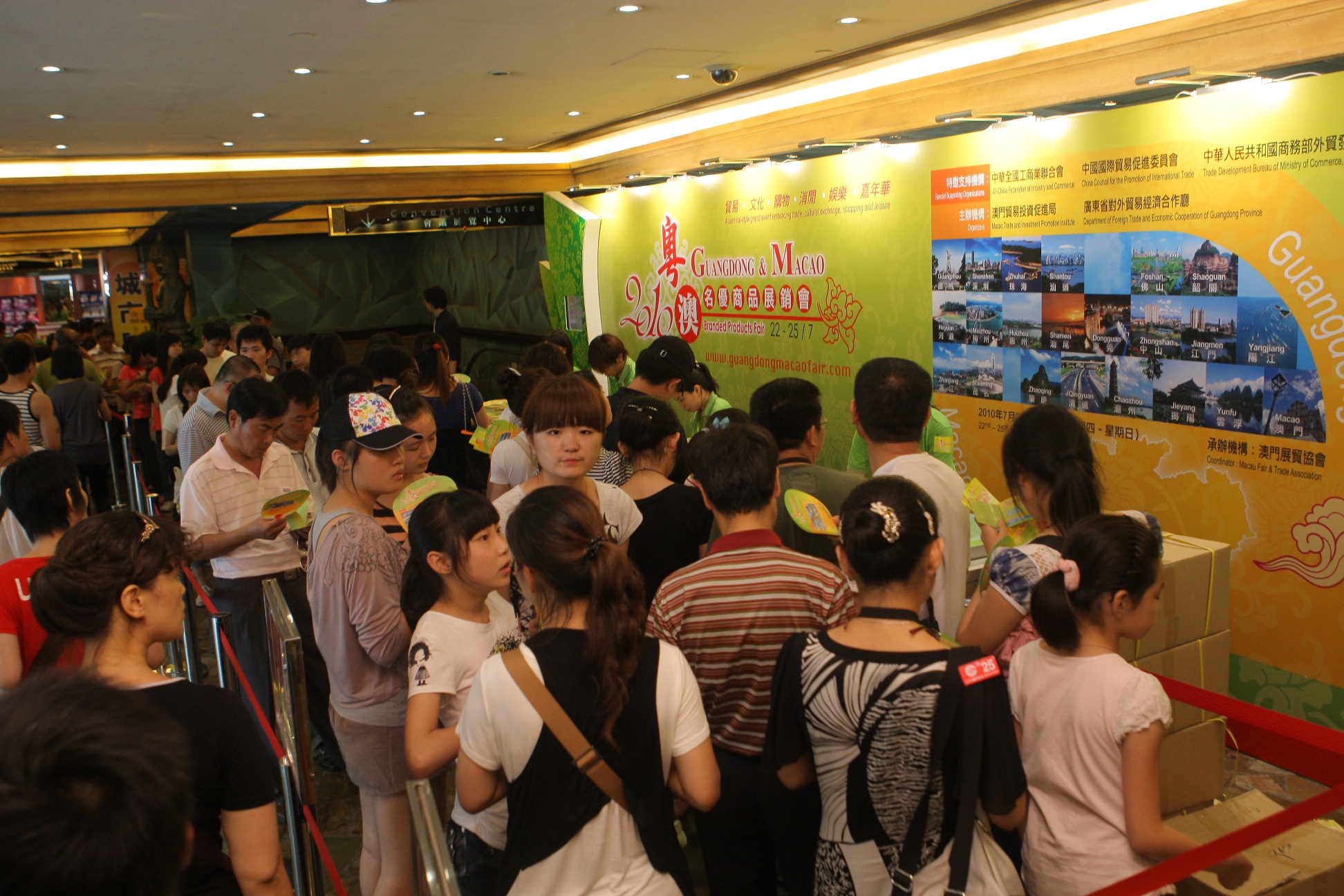 由澳門貿易投資促進局及廣東省對外貿易經濟合作廳共同主辦的“2010粵澳名優商品展銷會”今天進入第三天;舉辦了8場專業推介會,再次促成三項合作協議之簽署及安排了178場洽談。今天是星期六,迎來了展銷會開幕以來入場人次最多、購銷場面最熱烈的一天,截至下午5時30分,錄得超過23,000人次進場。