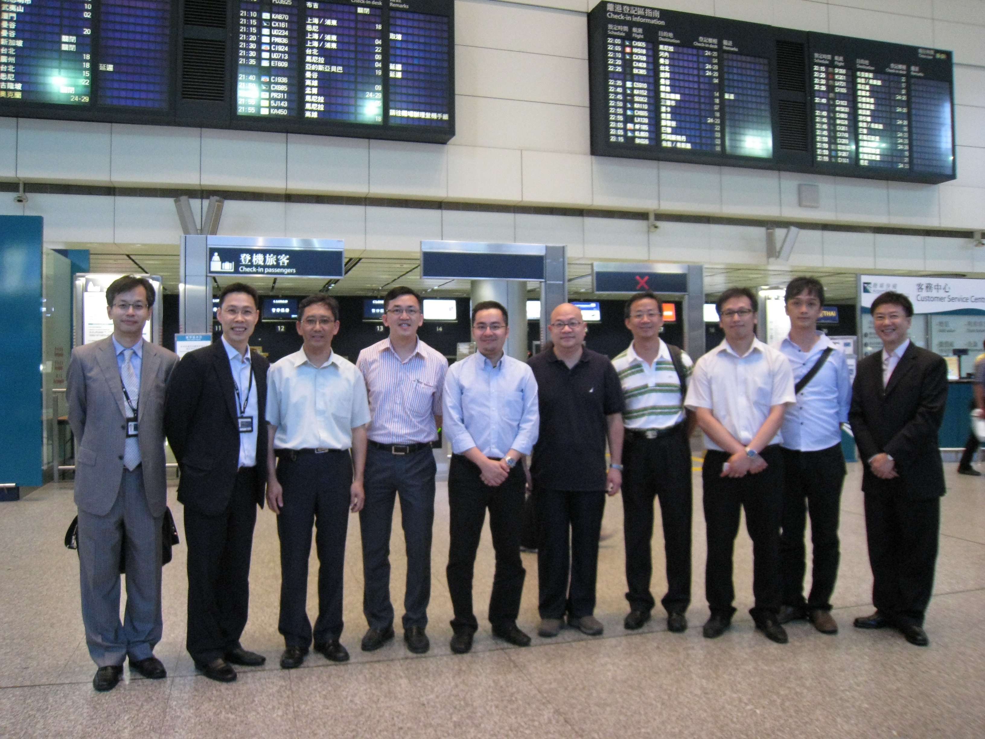 運建辦副主任何蔣祺、職務主管李安德及多位辦公室顧問一行,獲港鐵人力資源發展總經理沈銘義、管理訓練經理曾永昌及車廠經理梁志強等的熱情接待。代表團參觀了香港國際機場的旅客捷運系統、欣澳站、迪士尼站、青衣車務控制中心、九龍灣車廠工場、車務訓練中心及香港站的運輸交滙處、行李處理區。港鐵代表分享港鐵多年的營運、維護、人員培訓、交通樞紐設計、綠化及環境融合等方面寶貴經驗。其中,港鐵欣澳站屬開放式設計,為配合自然通風的節約概念,站內並沒有設置冷氣的恆溫裝置,該站的交通樞紐以開放及佔地少的設計為主,提供地面的公共巴士及的士轉乘的接駁服務,站內更設有無障礙的行人通道,令轉乘變得更快捷方便,這些經驗都可作為未來本澳輕軌開通營運的前後階段整體設計及安排的參考。