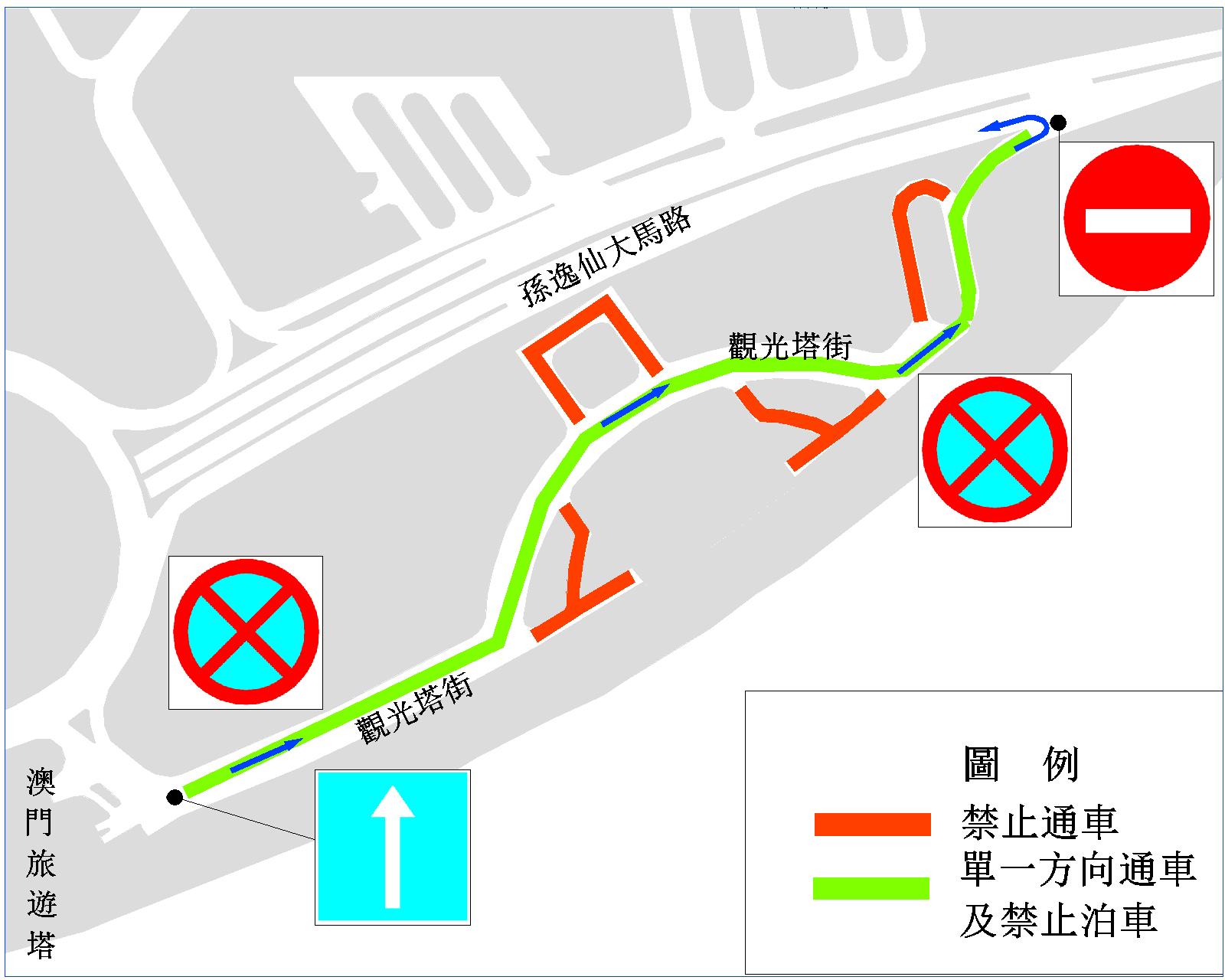 配合第22屆澳門國際煙花比賽匯演舉行,觀光塔街將於本月20日(周五)上午11時至10月3日晚上10時,臨時改作單向行車,即車輛需要由澳門旅遊塔往孫逸仙大馬路方向行駛,交通事務局呼籲駕駛者留意有關交通改動。