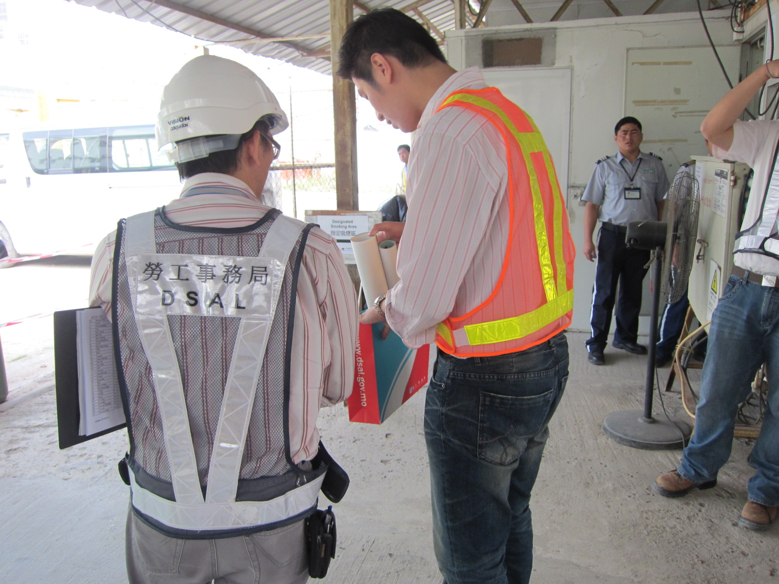 由於颱風「鮎魚」迫近,勞工事務局近日加派人手到各建築地盤進行特別巡查,提醒各承造商、分判商或負責人做好各項防風措施,尤其巡查棚架的狀態、提醒確保執行吊重裝置及吊船的安全事項,以保障工作人員及公眾安全。