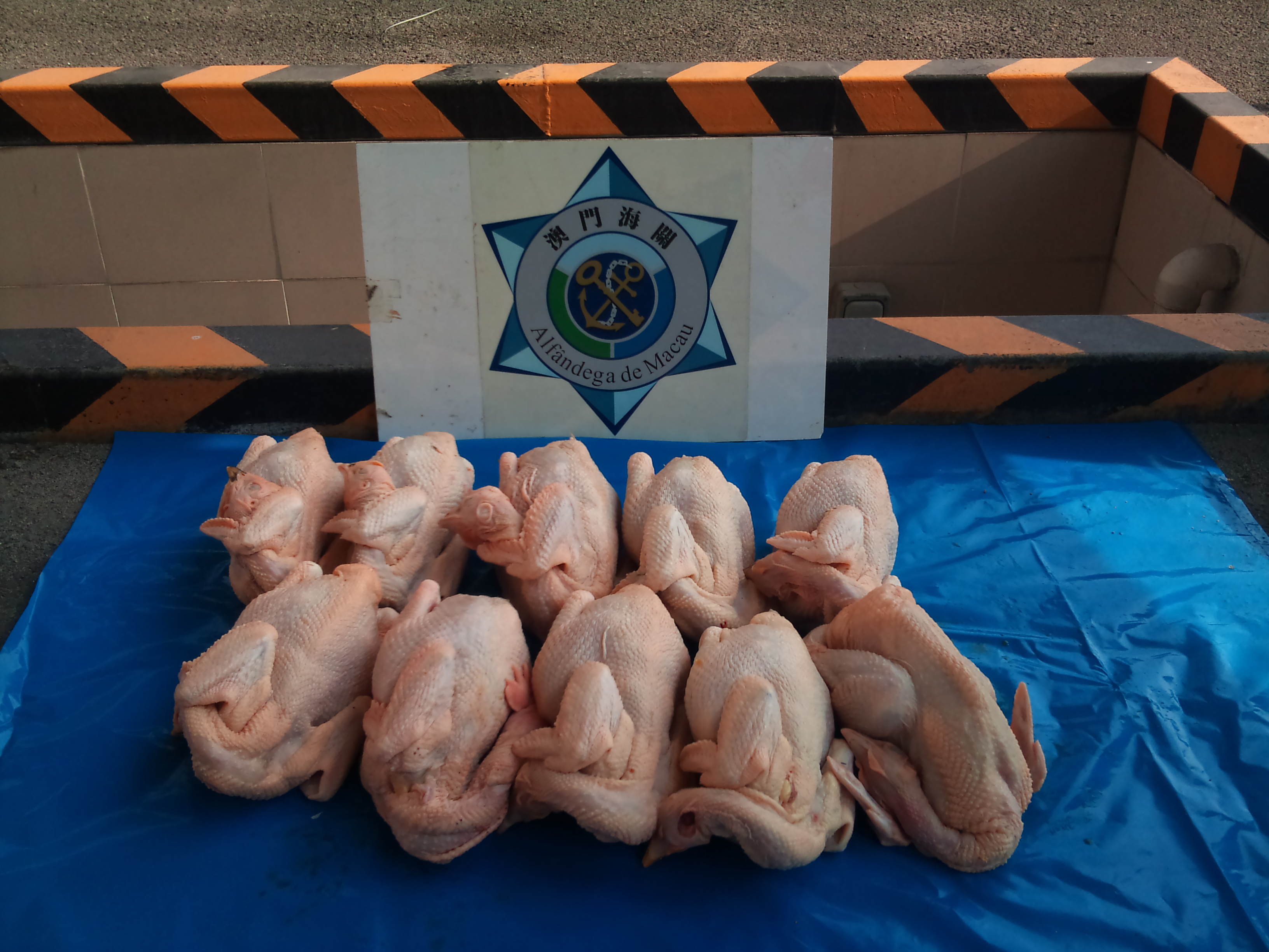 於今天早上,海關人員發現部份回澳水客將從內地帶回本澳的物品放於上述地點後便離開。其後,一名本澳女子走近並將有關物品進行整理後準備離開時﹐被海關人員截停,並發現該批被運走之物品為一些未經檢疫的已宰鮮雞。調查期間,該名本澳女子聲稱,該批未經檢疫的已宰鮮雞是其今天在拱北市場購買,並已每隻3元的帶功費交由水客帶回本澳。在台山新城市花園平台收回後,在附近一帶作非法擺賣。。