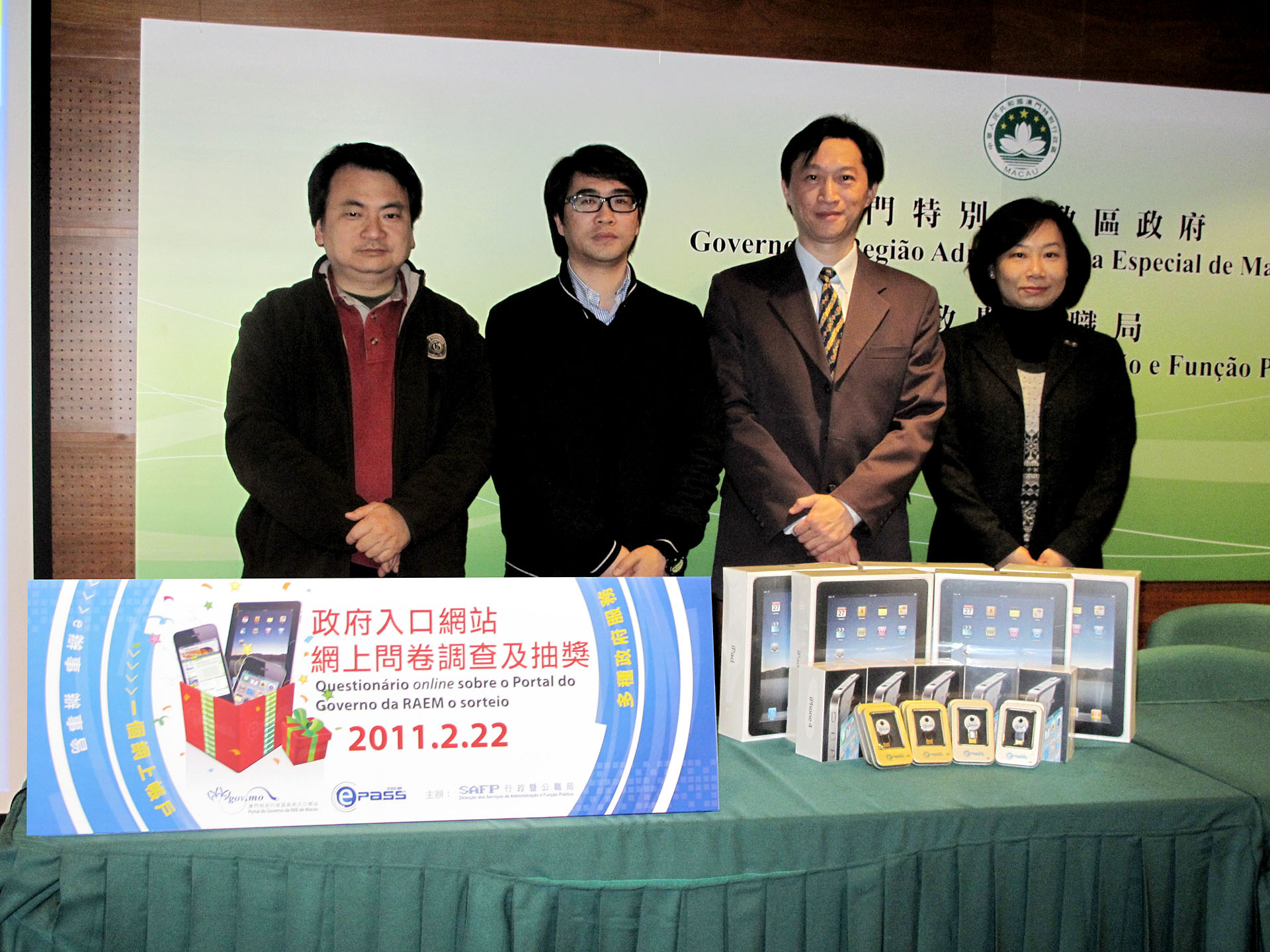 抽獎儀式於2月22日於水坑尾公共行政大樓行政暨公職局舉行,由行政暨公職局副局長杜志文、勞工事務局就業廳廳長鄧月微、退休基金會組織資訊處處長羅禮堅及澳門電腦學會會長林定共同主持,分別抽出60名得獎者。獲獎名單已上載到e辦事(ePass)專題網站http://www.gov.mo/epass,供公眾查閱,主辦單位亦會安排專人通知獲獎者領獎。
