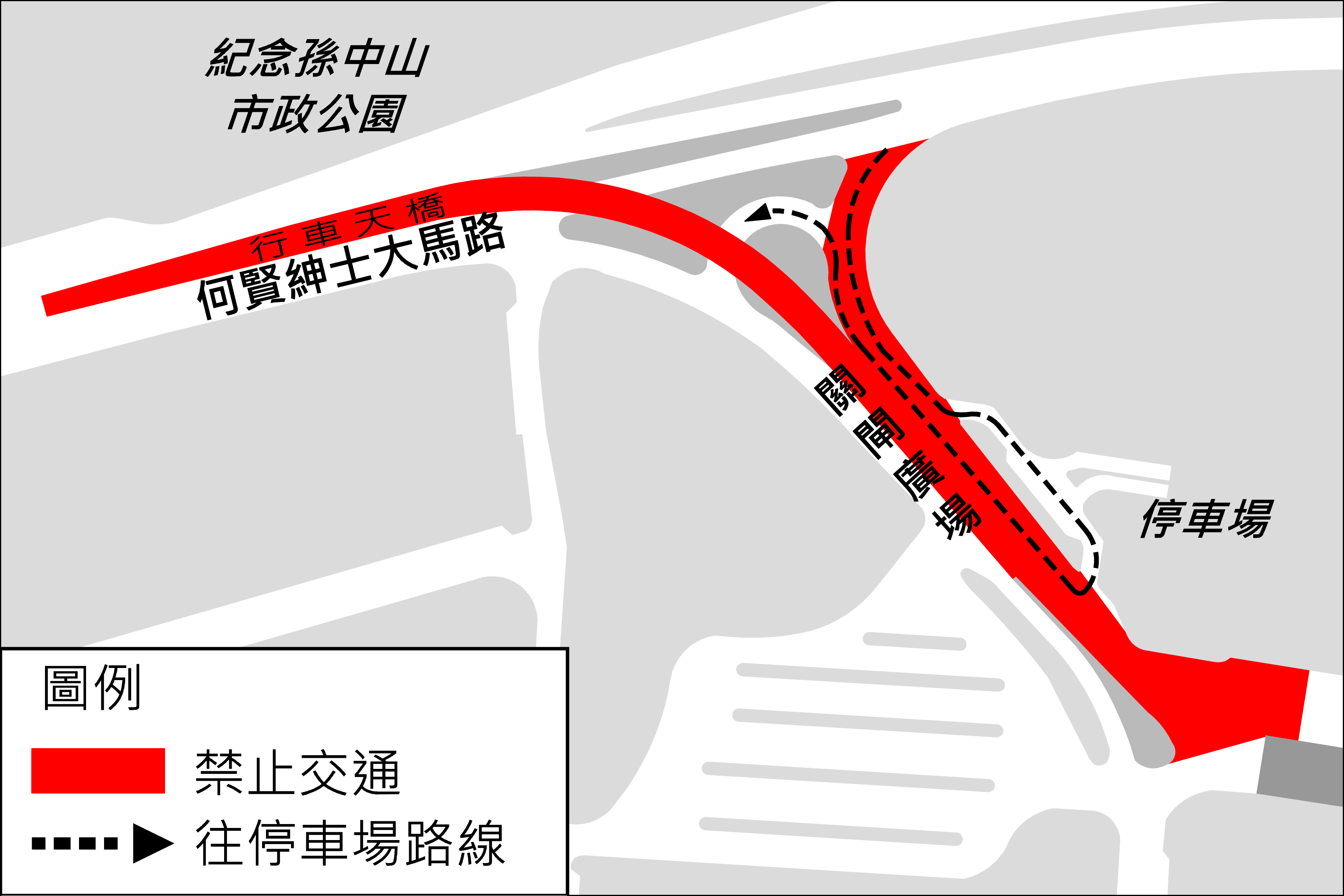 為優化現有關閘廣場西側的臨時行人天橋設施,土地工務運輸局將在天橋安裝升降機,方便攜帶大件物品的居民及旅客上落,配合工程展開,附近相關路段需要實施交通管制,於周日(20日)凌晨0時30分至早上6時期間,何賢紳士大馬路行車天橋將封閉交通,而關閘廣場近澳門工會聯合總會工人體育館的路段亦只允許進出停車場之車輛駛入,其餘車輛禁止駛入,有關道路封閉期間,駕駛者可改由巴波沙大馬路往關閘廣場地下行車道。