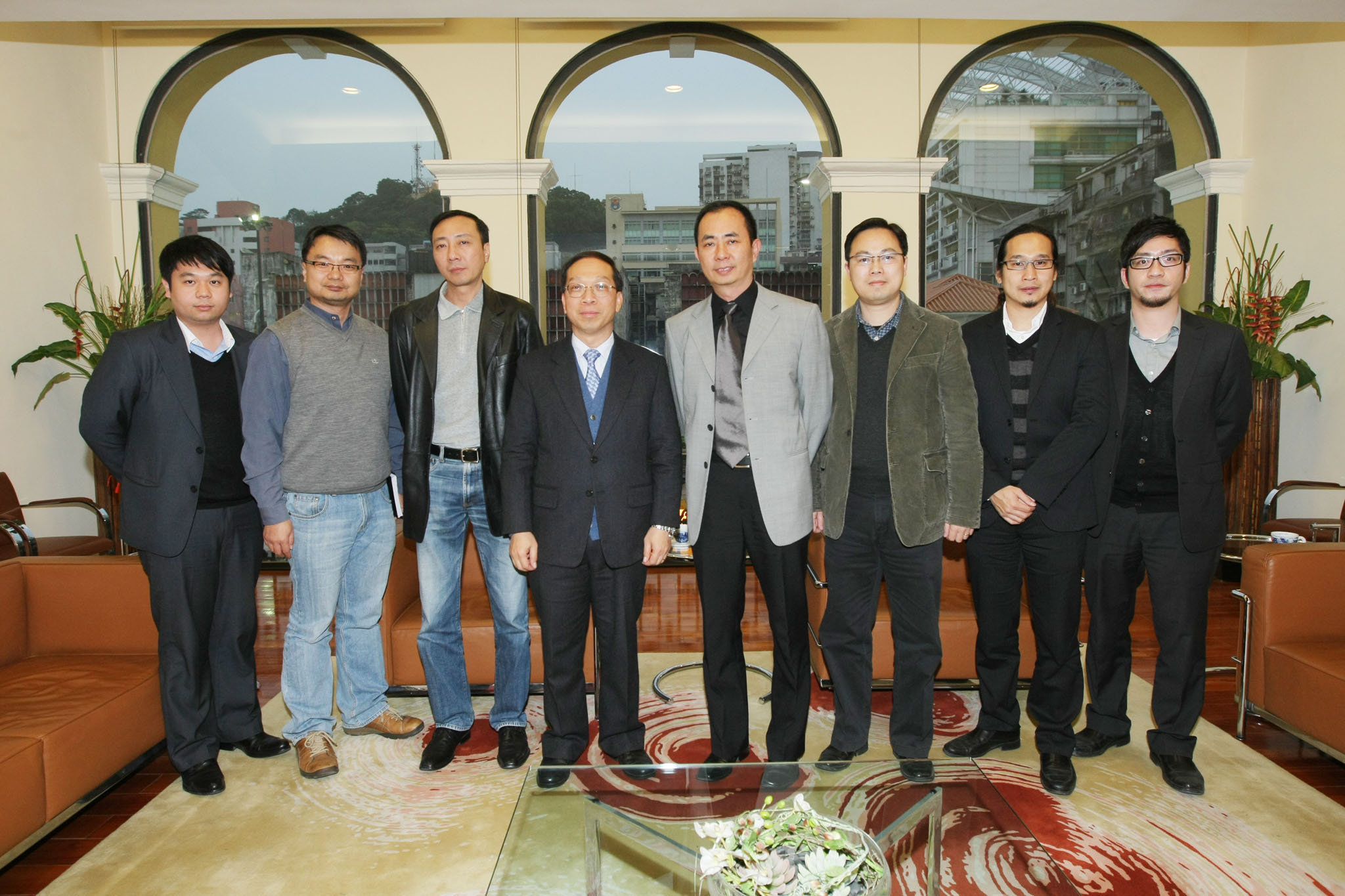 澳廣視行政總裁梁金泉、特別項目科經理陸鋼(三月十七日)到訪文化局,與吳衛鳴局長、陳澤成副局長、文化創意產業促進廳陳炳輝廳長及文化局同事會面,探討本澳文化影視節目的發展及影響力。雙方今後將加強及互助文化藝術領域的交流和合作,共同開展創辦、促進及提升本澳影視文化氛圍,將澳門文化特色借由電子媒介廣泛宣傳。