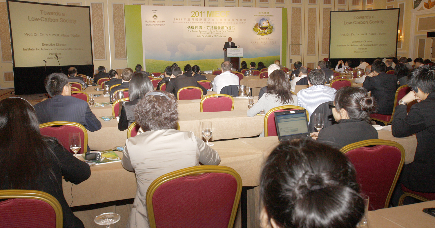 「2011年澳門國際環保合作發展論壇及展覽」(MIECF)第2日(4月1日)邀請前聯合國副秘書長兼聯合國環境規劃署(UNEP)執行主任托普弗先生(Klaus Toepfer)進行「低碳經濟 ─ 可持續發展的基石」專題演講,並接受傳媒訪問。他強調,可持續發展並不只就目前已有的技術及方案加以應用,而應發揮人類應該有的無限想像,以達至無限可能。