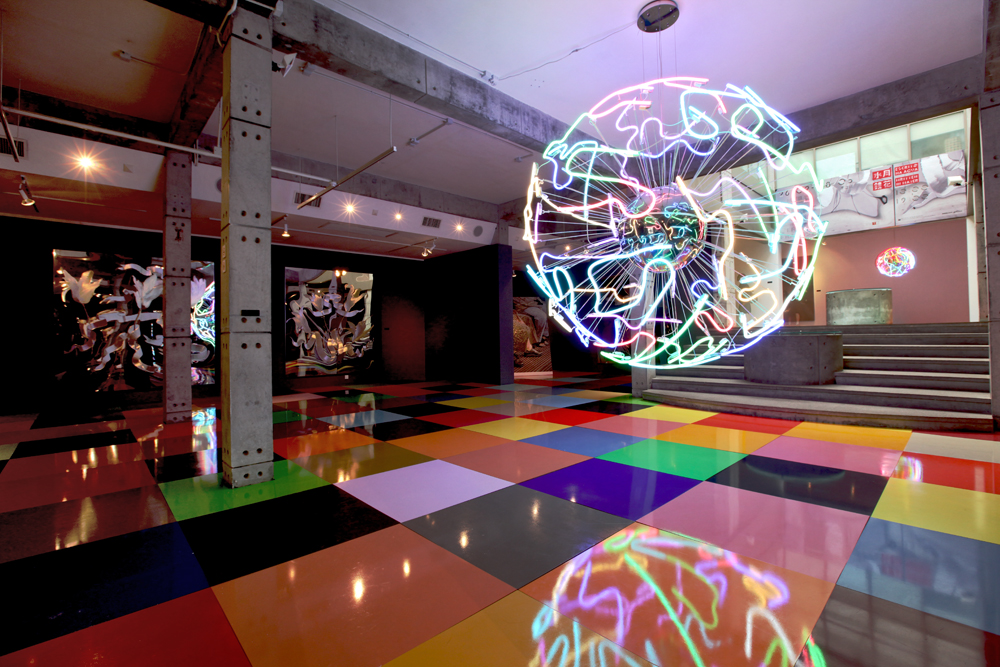 展場中偌大而眩目的霓虹燈裝置作品,讓整個展場增添了無限的想像空間。當觀眾進入塔石藝文館,那奪目的霓虹燈裝置不只作為一個實體展現,虛蕩的倒映同時出現在牆上懸掛的不鏽鋼作品,並與色彩斑斕的地板相互爭妍,使整個展覽空間構成一個夢幻的整體。而在這些扭曲的圖像與幻象之間,又展示埃里克極之寫實的馬賽克作品,使展示空間更富多樣的特性;據埃里克的敍述,他從年青時已對馬賽克深感興趣,他運用旅居美國時所拍攝之照片為題材,以過去表現神聖題材的馬賽克,結合攝影圖像的寫實形式,構成富當代性的馬賽克作品;在這多樣而風格強烈的作品,儼然收藏進塔石藝文館精緻的展示空間之中,供觀眾想象與欣賞,構成夢幻而奇妙的欣賞經驗。