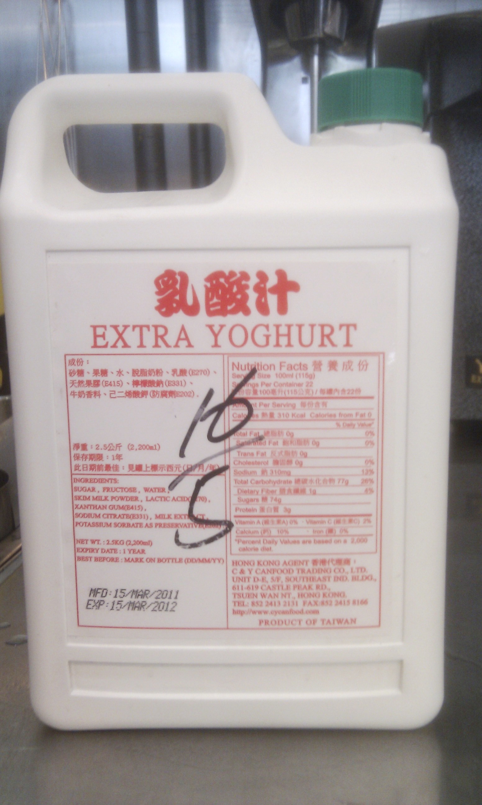 有關乳酸汁來源地為台灣,香港代理商為C&Y Canfood Trading Co. Ltd,有限食用日期為2012年3月15日。食安小組已通知相關業界要求停用有關原材料。據了解產品貨源由香港進口,食安小組亦已聯繫香港食物安全中心跟進。