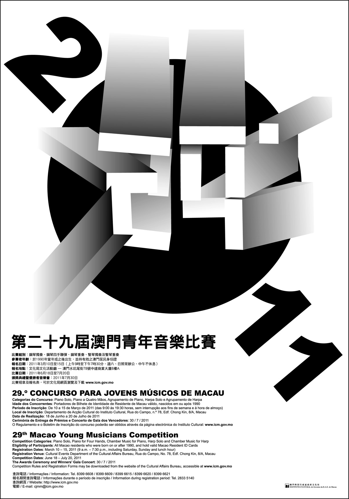 音樂比賽首輪將舉行“鋼琴小奏鳴曲”、 “鋼琴四手聯彈初級、中級”、 “中國作曲家鋼琴作品- 初級”等賽事,歡迎有興趣的居民及家長觀賞。有關比賽消息及日程,可瀏覽網頁www.icm.gov.mo/cjmm。