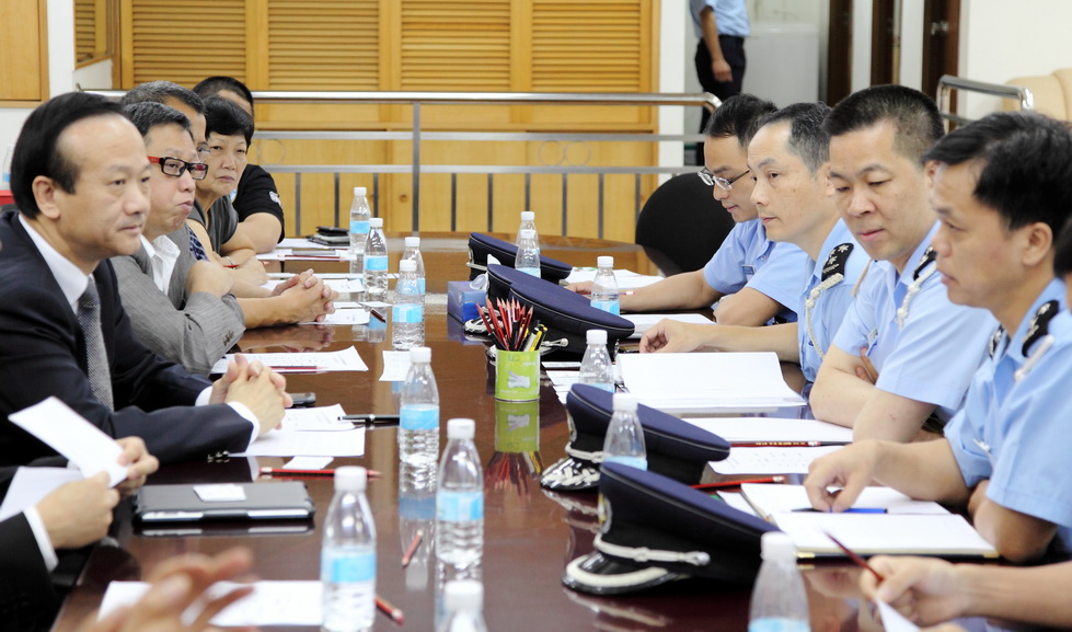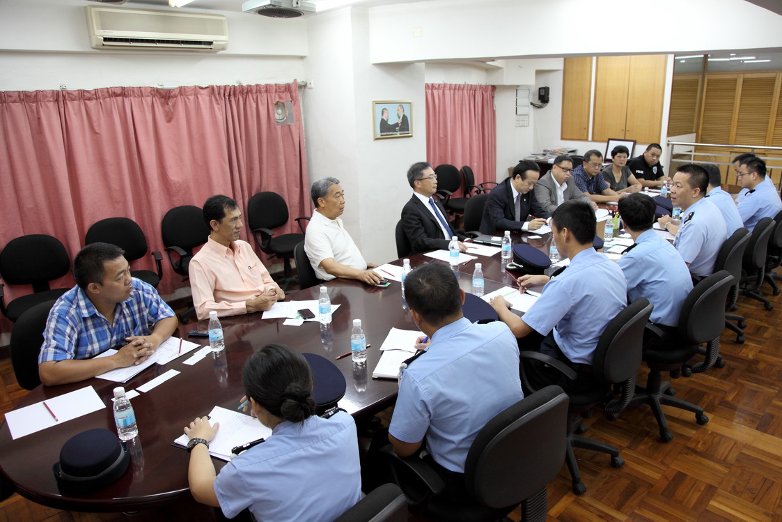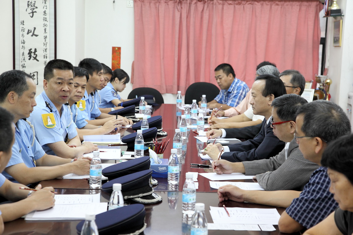 今天上午,本局拜訪了澳門物業管理業商會。在澳門警務廳廳長陳民德警務總長帶領下,公共關係處高國強警司連同海島警務廳黃景輝警司以及數名警官代表一行六人獲商會會長劉藝良、副會長周爵、崔銘文、張運善、謝思訓及理事長劉錦成等親切接待。