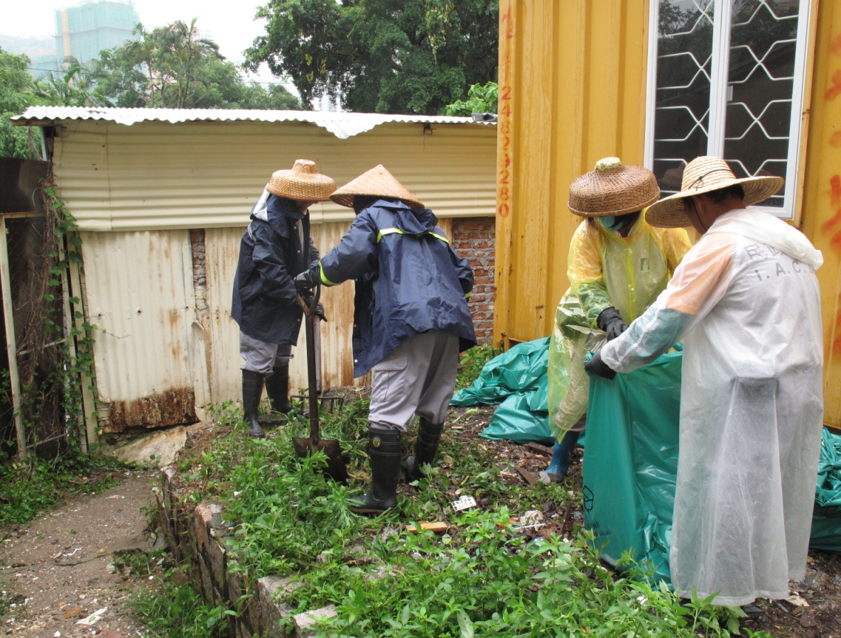 為避免垃圾積水滋生蚊蟲,引起環境衛生及傳播疾病,衛生局與民政總署除了過往已曾將區內一些有積水的小水坑填平,民政總署今日亦派員到場清理垃圾,以及在區內增設垃圾收集點的指示牌,並聯同衛生局向居民宣傳不可亂拋垃圾及保持環境衛生的訊息;考慮到區內有南亞裔人士聚居,派發的宣傳單張備有中文、英文、印尼文及越南文等相關語言,方便住戶知悉。而衛生局亦一直有進行平均每月一次的常規性的滅蚊工作,減低蚊蟲滋生的可能。此外,警方已加派警員在區內巡邏,防止罪案發生。