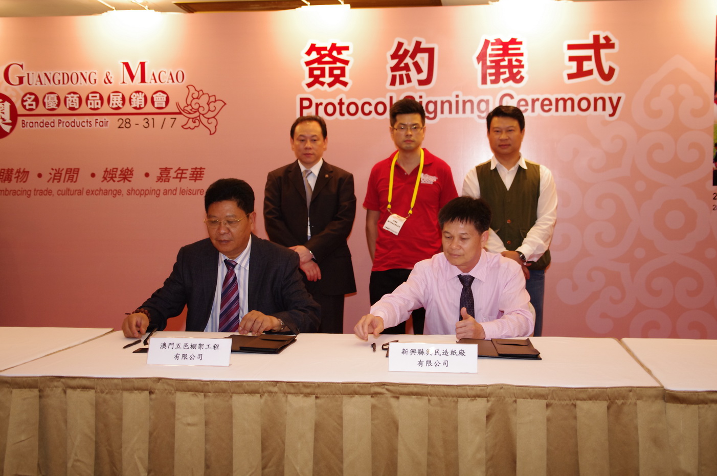 大會今天繼續安排了210場商業配對,另外,再有1份合作協議簽約,簽約方來自澳門及廣州,項目為“回收紙製品,循環再造合作協議”由澳門五邑棚架工程有限公司與廣州新興縣興民造紙廠有限公司簽署。