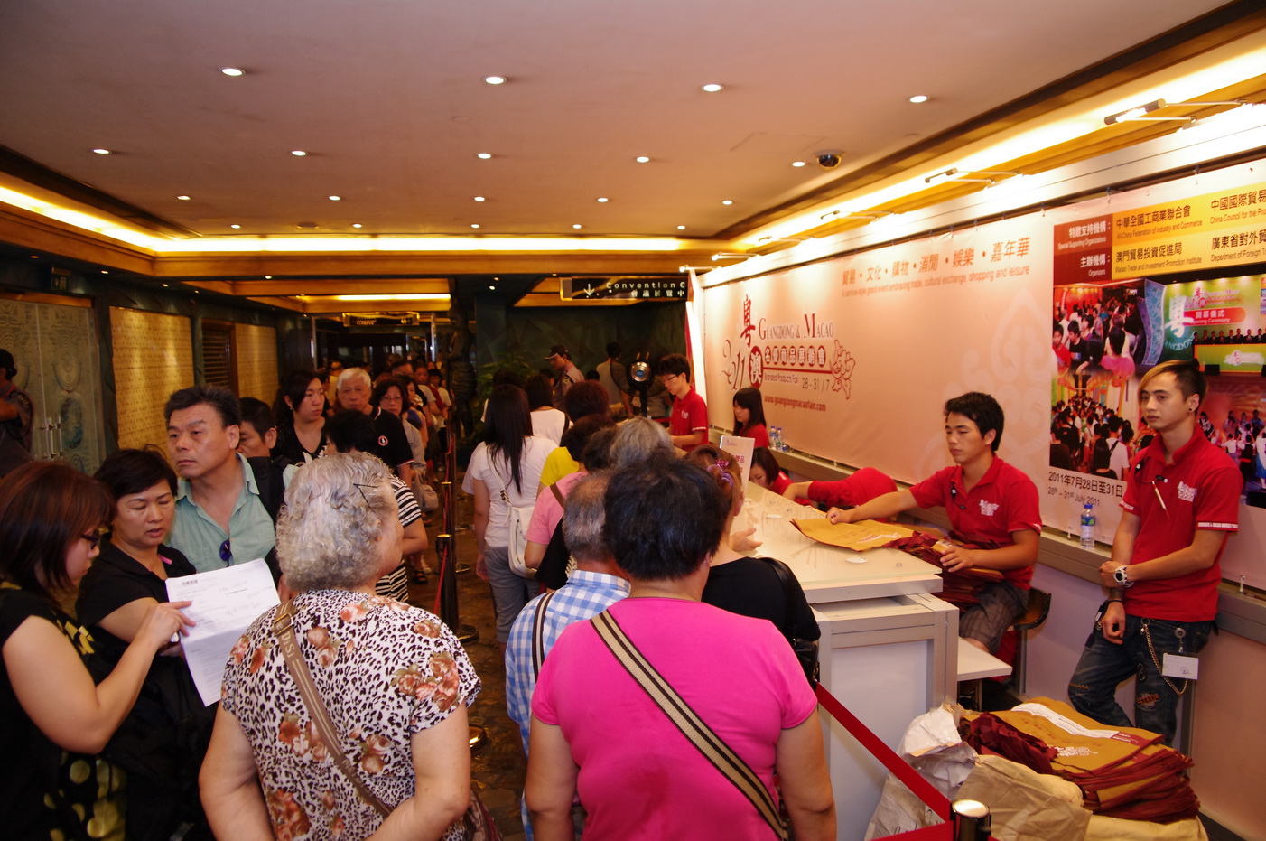 由澳門貿易投資促進局及廣東省對外貿易經濟合作廳共同主辦的“2011粵澳名優商品展銷會”今天進入第三天,適逢星期六,展銷會吸引大量市民到會購物,截至下午5時,大會錄得超過22,000人次入場,是展銷會開幕以來入場人次最多的一天。