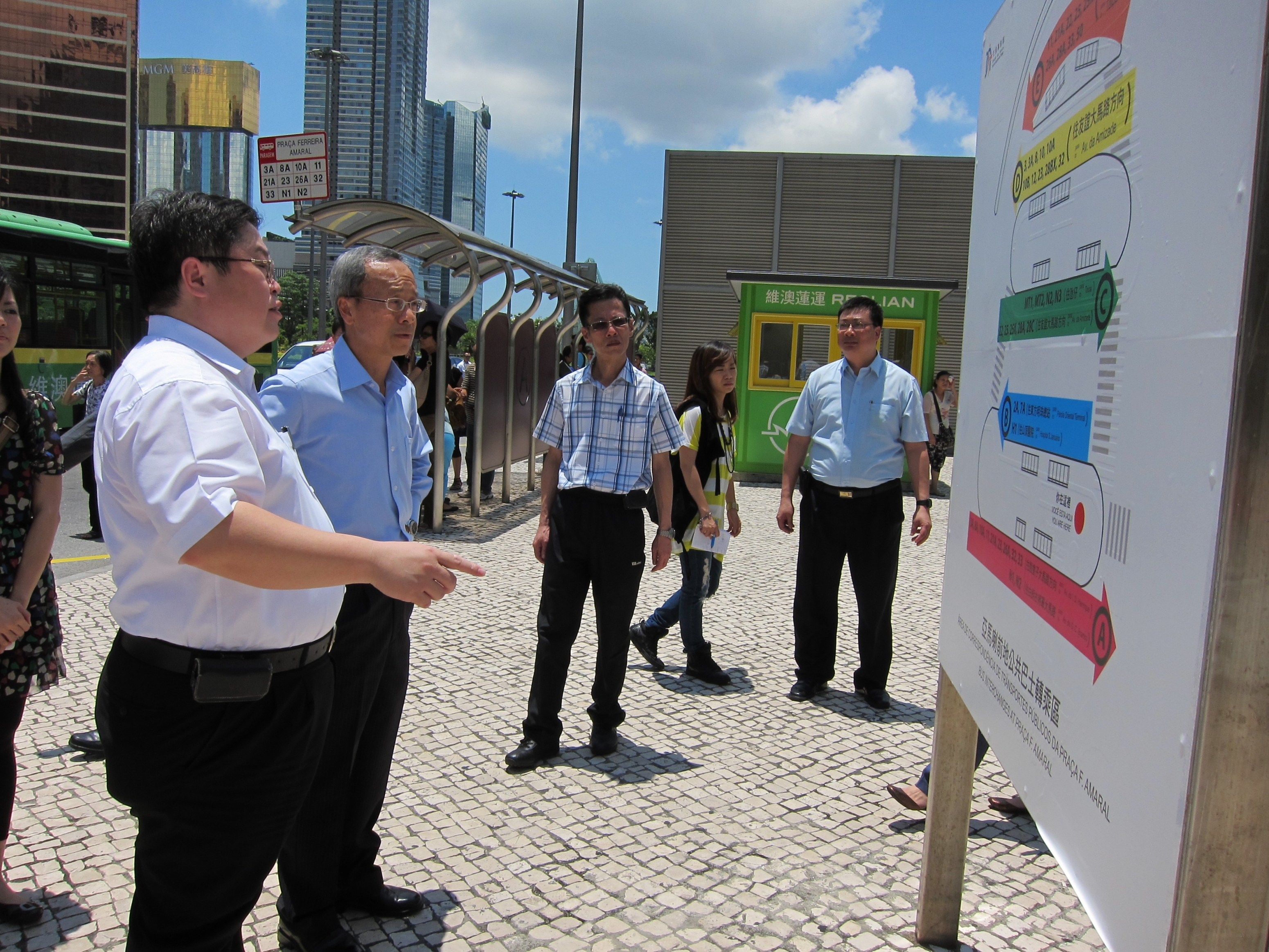 運輸工務司司長劉仕堯今(1)日到媽閣及亞馬喇前地巴士站了解新巴士服務狀況,為三間巴士公司司機及工作人員打氣,了解居民訴求,並勉勵交通事務局人員繼續努力協調好新巴士服務的運作,為居民打造良好的出行環境。劉仕堯強調,巴士服務正式進入新里程,由於有新公司加入運作,各營運商需要時間適應,因此呼籲市民給予支持及理解。