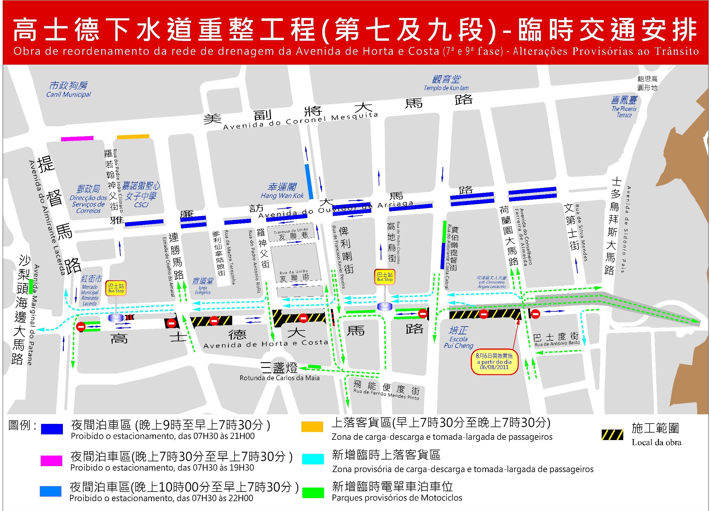 另外,配合工程開展,6號巴士路線會輕微調整,在駛至士多鳥拜斯大馬路後,將取道巴士度街、荷蘭園大馬路進入高士德大馬路。