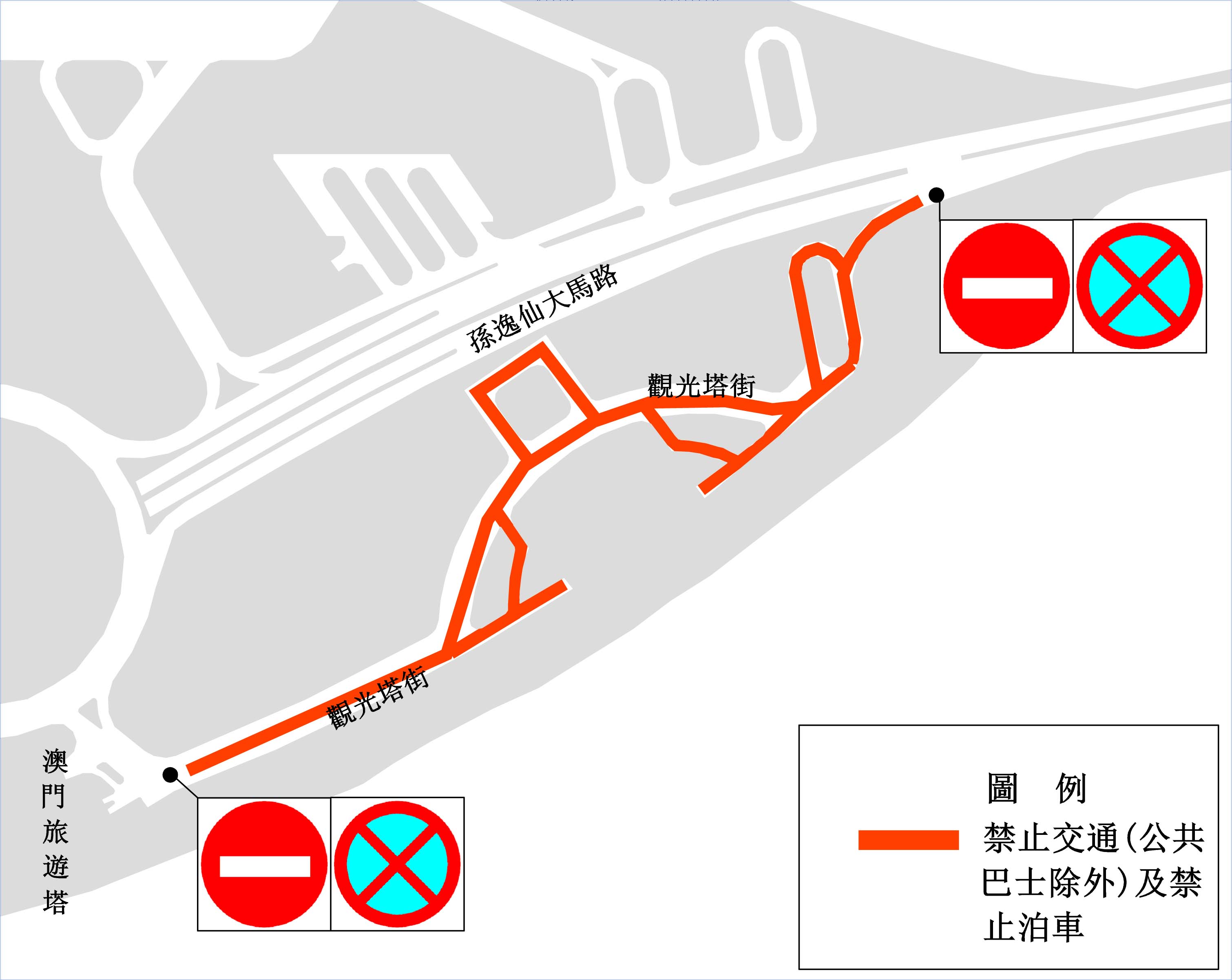 至於舉行煙花匯演期間,即9月10日、12日、17日、24日及10月1日每日晚上9時至11時,觀光塔街將封閉交通,除公共巴士及緊急服務車輛外,其餘車輛禁止駛入。