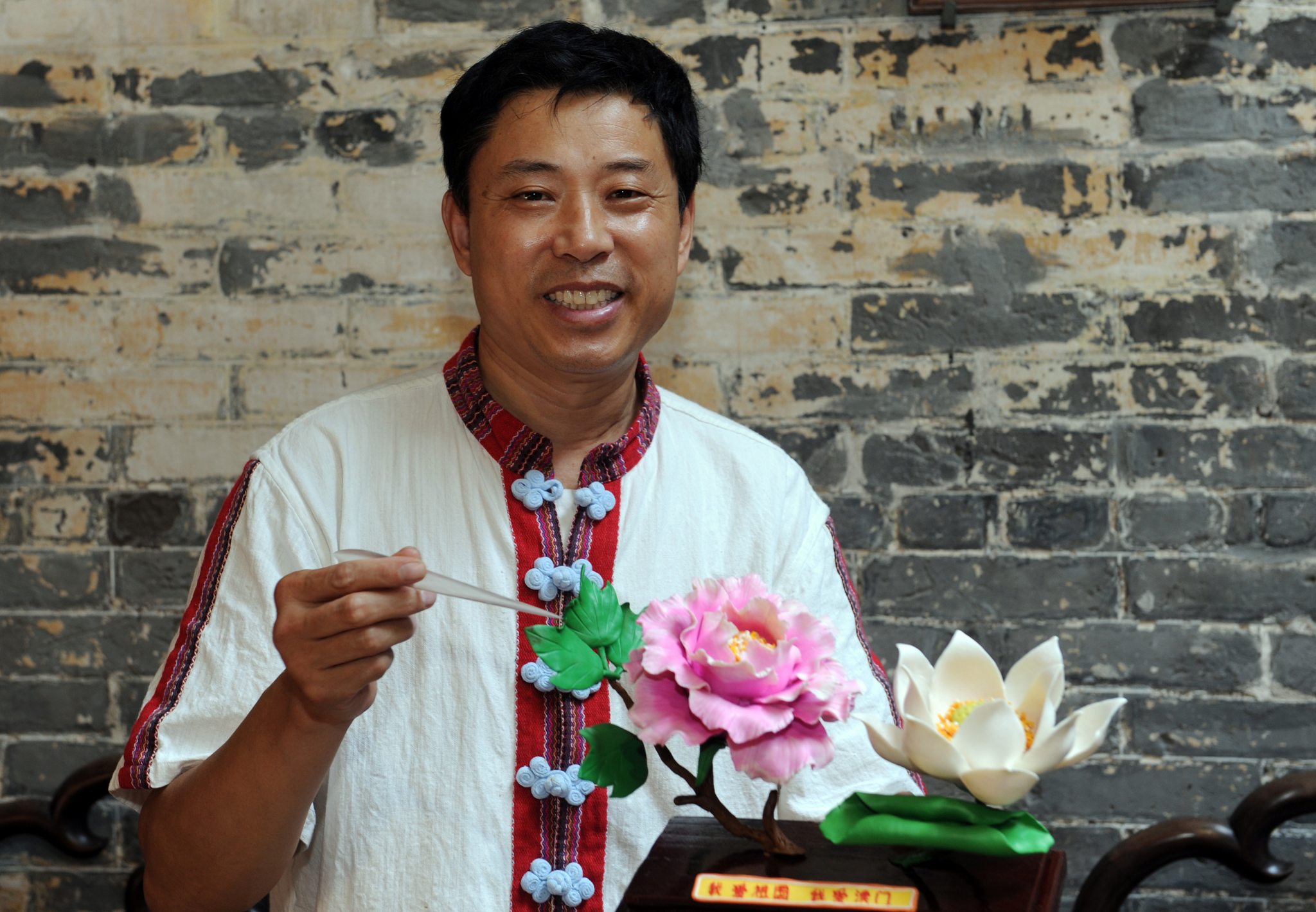 除了陶瓷作品,以麵粉製作的菏澤麵人同樣可登大雅之堂,成為陳設的藝術品。來自山東菏澤的麵人代表性傳承人穆緒建,以特別配製和調理的麵團巧手塑造各種人物、花鳥等立體形態,作品具有濃厚的民間風味,主題豐富,色彩鮮豔。展演期間,參觀者除可欣賞現場多件賞心悅目的麵塑作品外,更可體驗「現場捏個你」活動,由工藝家為客訂製質感逼真、獨一無二的個人麵塑公仔。