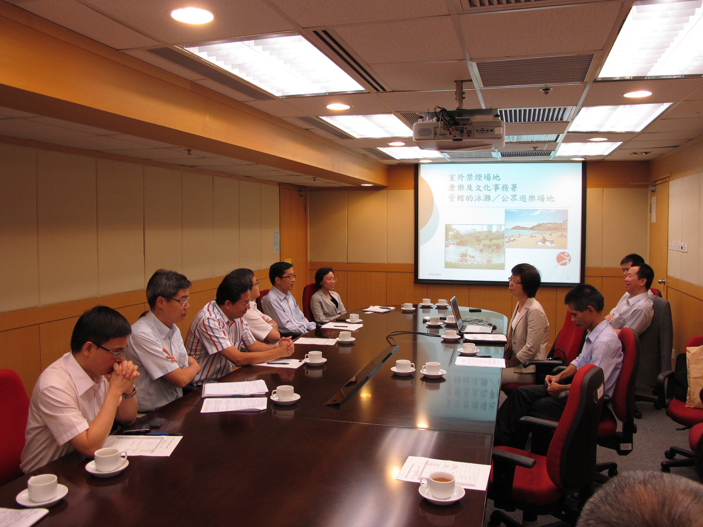 會面期間,香港衞生署控煙辦公室邀請了衞生署多位代表,就香港控煙工作在控煙法例和執行、警務處與控煙辦公室的協作、康樂及文化事務署相關法定禁煙區的執法及室外禁煙場地的劃分、食物環境衞生署相關法定禁煙區的執法、垃圾桶的設計及禁煙區內外的擺放等不同層面的管理與操作問題展開介紹,並和與會者進行了深入的探討。
