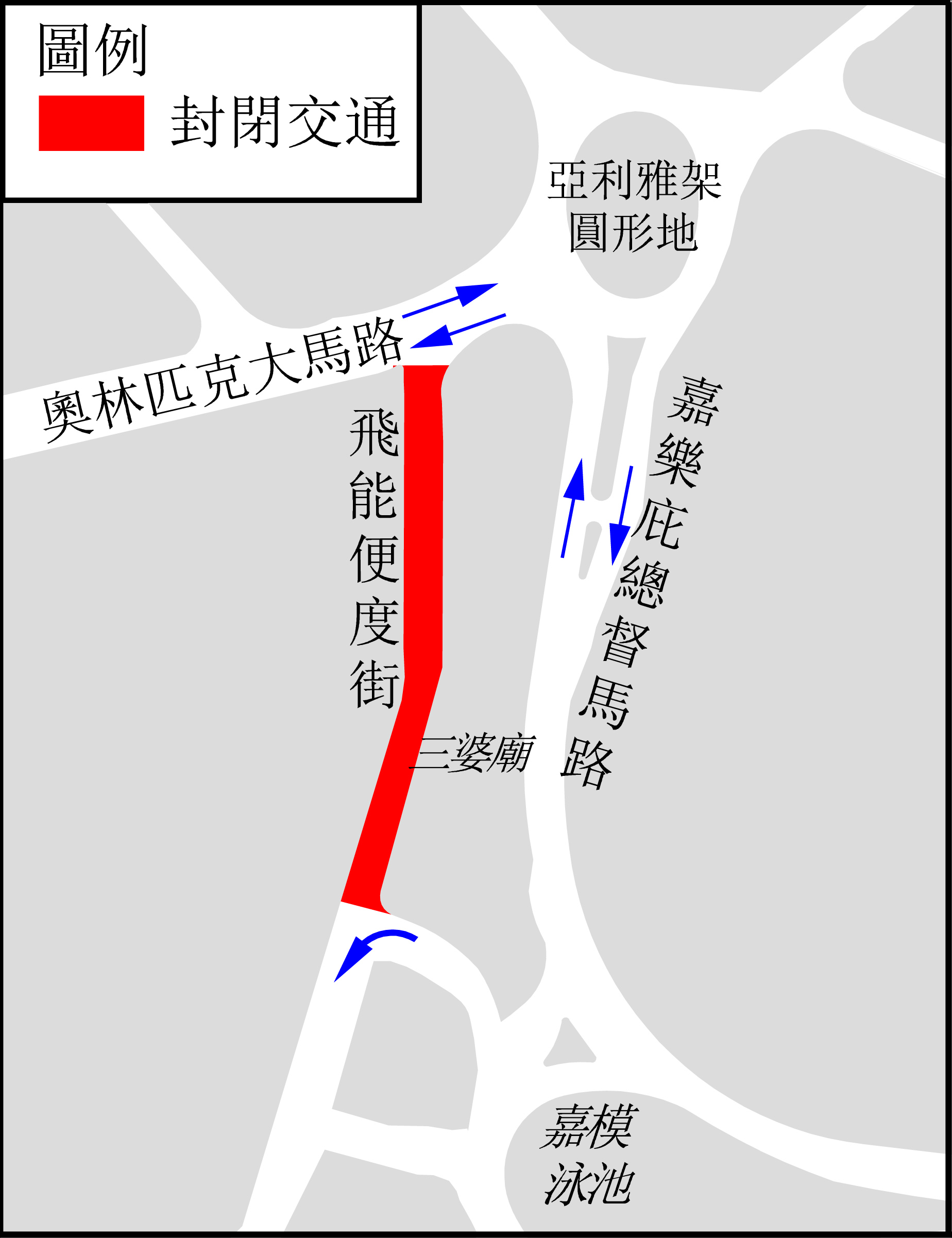 因緊急維修下水道,介乎奧林匹克大馬路與素啤古街之間的一段飛能便度街將於20日(周二)上午11時起封閉交通,並臨時停用5個巴士站,為期10日,交通事務局呼籲市民和駕駛者留意有關交通改動。