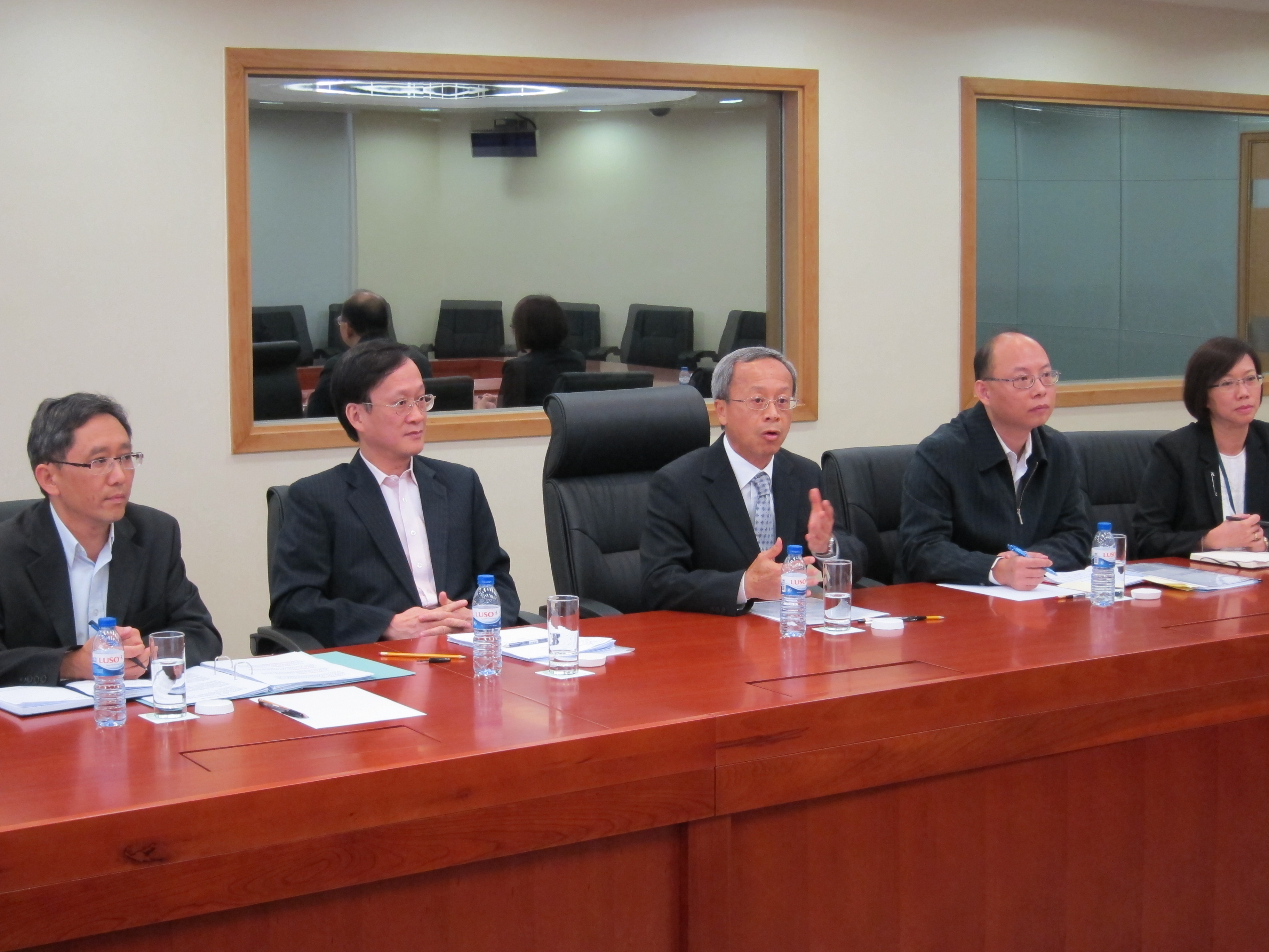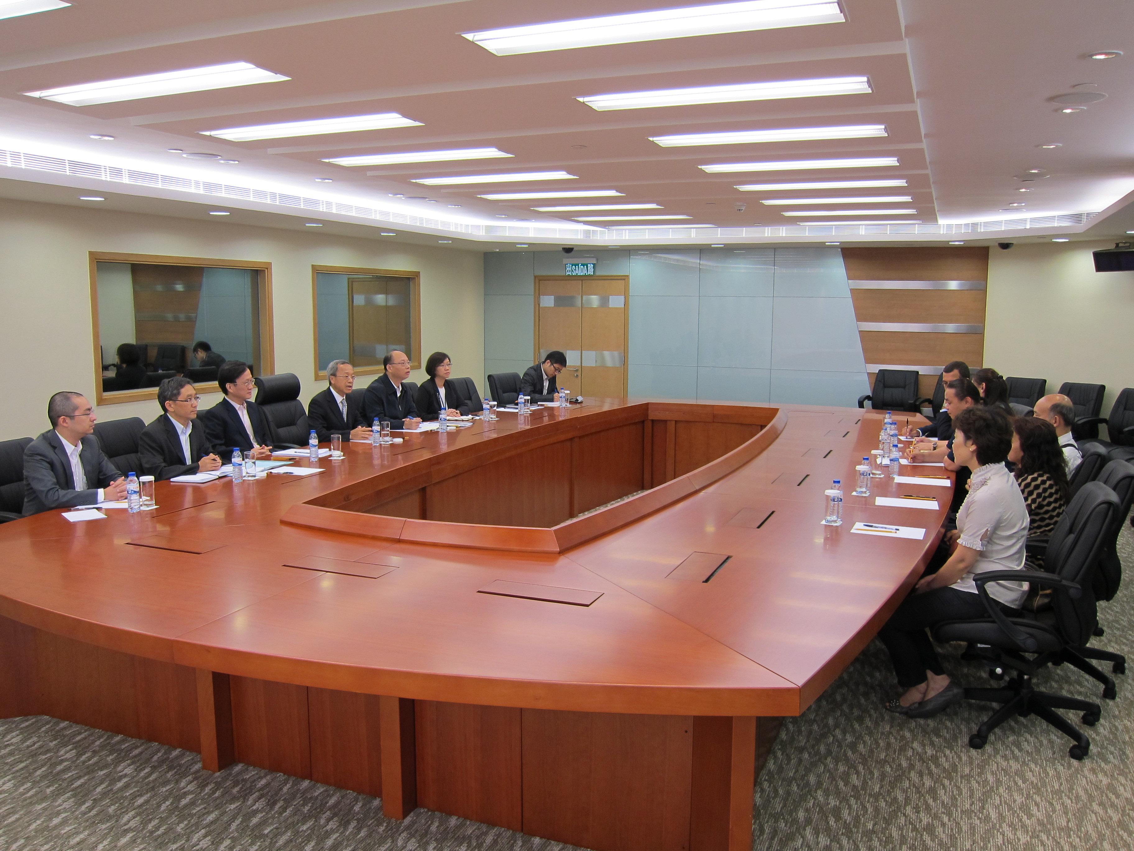 運輸工務司司長劉仕堯,運輸基建辦公室主任李鎮東、副主任何蔣祺及李安德等,今日約見澳門社區發展協會多名代表。劉仕堯首先闡述了輕軌系統對澳門可持續發展的重要性,建成後將大大改善交通狀況,有利居民出行。因此,輕軌系統從最早的概念構思、初步規劃到後來的多次路線方案,皆進行大規模的諮詢,在社會凝聚主流意見後,才制訂現時的方案。