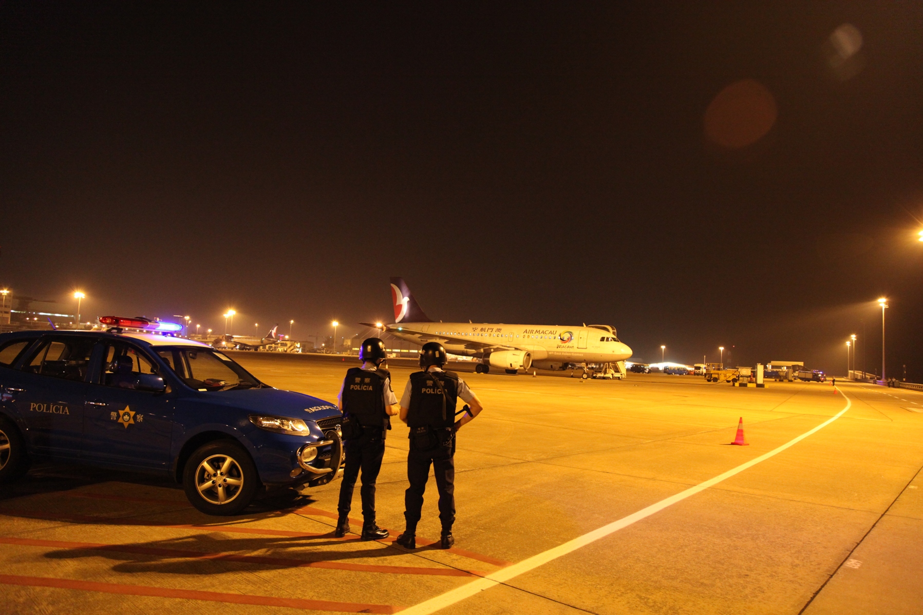 為測試及評估澳門國際機場在面對航空保安突發事件時,機場緊急應變計劃及各參與行動機構的緊急計劃的有效性,多個政府部門及機場營運機構於今晨(10月18日)在澳門國際機場聯合舉行 “2011劫機演習”,模擬一架遭非法劫持的航機降落澳門國際機場,機場即時啟動緊急應變計劃處理事件,保安部隊成功將乘客救出。演習過程順利。