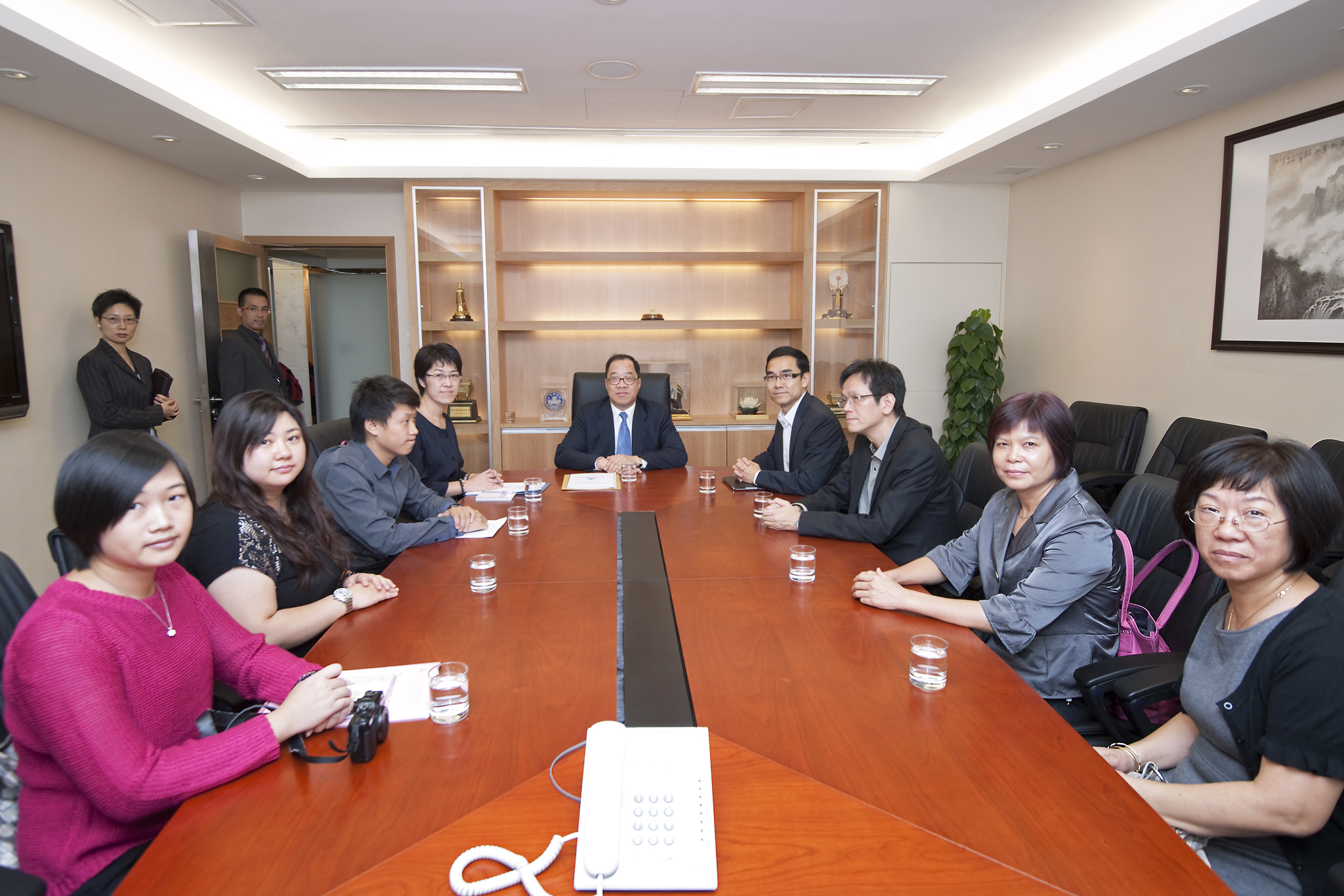 譚伯源下午於辦公室會見立法議員何潤生、街坊總會副理事長吳小麗等街總代表, 並接收由街總提交的「博彩社區化對居民的影響」調查報告。