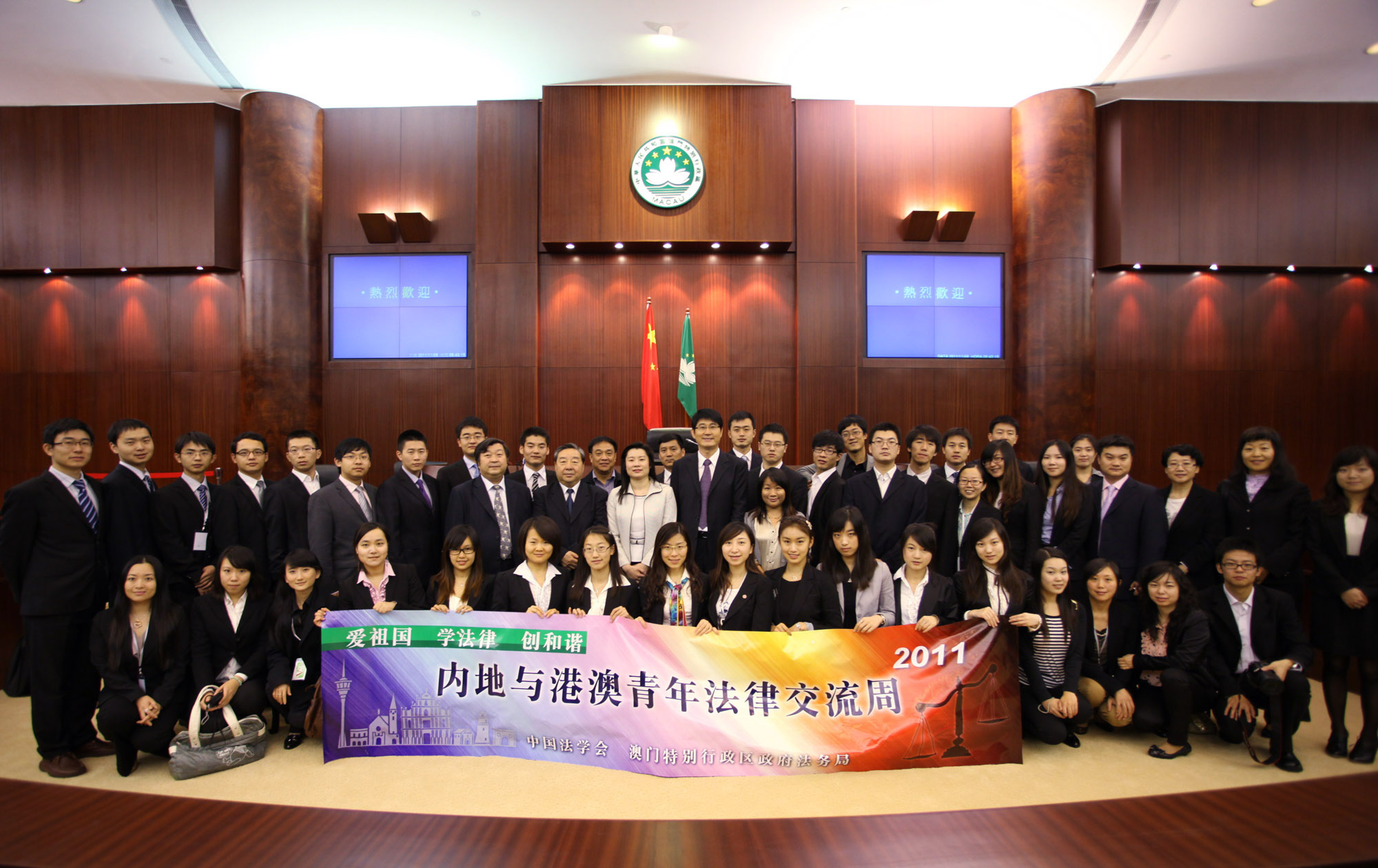 為深化澳門與內地的聯繫,中國法學會與法務局共同舉辦“愛祖國、學法律、創和諧”活動,安排內地多所高校的法律學子,組織“內地與港澳青年法律交流團”來澳參觀訪問,藉此促進內地青年法律人員對澳門法制的認識,以及加強內地與澳門的青年法律人員的交流。
