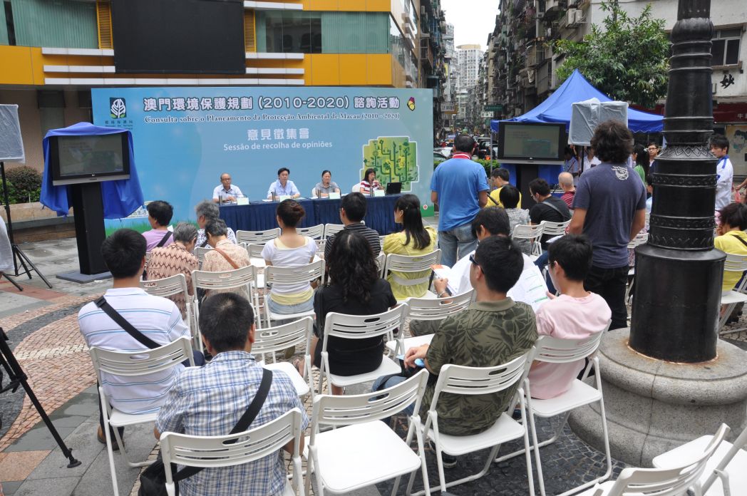 《澳門環境保護規劃(2010-2020)》諮詢活動於本年9月7日開始,至11月6日結束。諮詢期間,環境保護局分階段在全澳各區舉行巡迴展覽,讓各區居民認識《澳門環境保護規劃(2010-2020)》的核心內容。此外,為了讓居民從不同角度深入了解諮詢文本的構思,了解政府在構建和執行環境保護規劃的決心,環境保護局先後舉辦多場意見徵集會,分別針對不同區分的居民和專業界別人士進行不同的公眾及專業界別專場諮詢交流活動。另外,考慮到環境規劃的執行性及可持續性,必須要年青一代的理解和參與,特別舉行學生交流會專場,從青少年的目光探討環境保護問題。