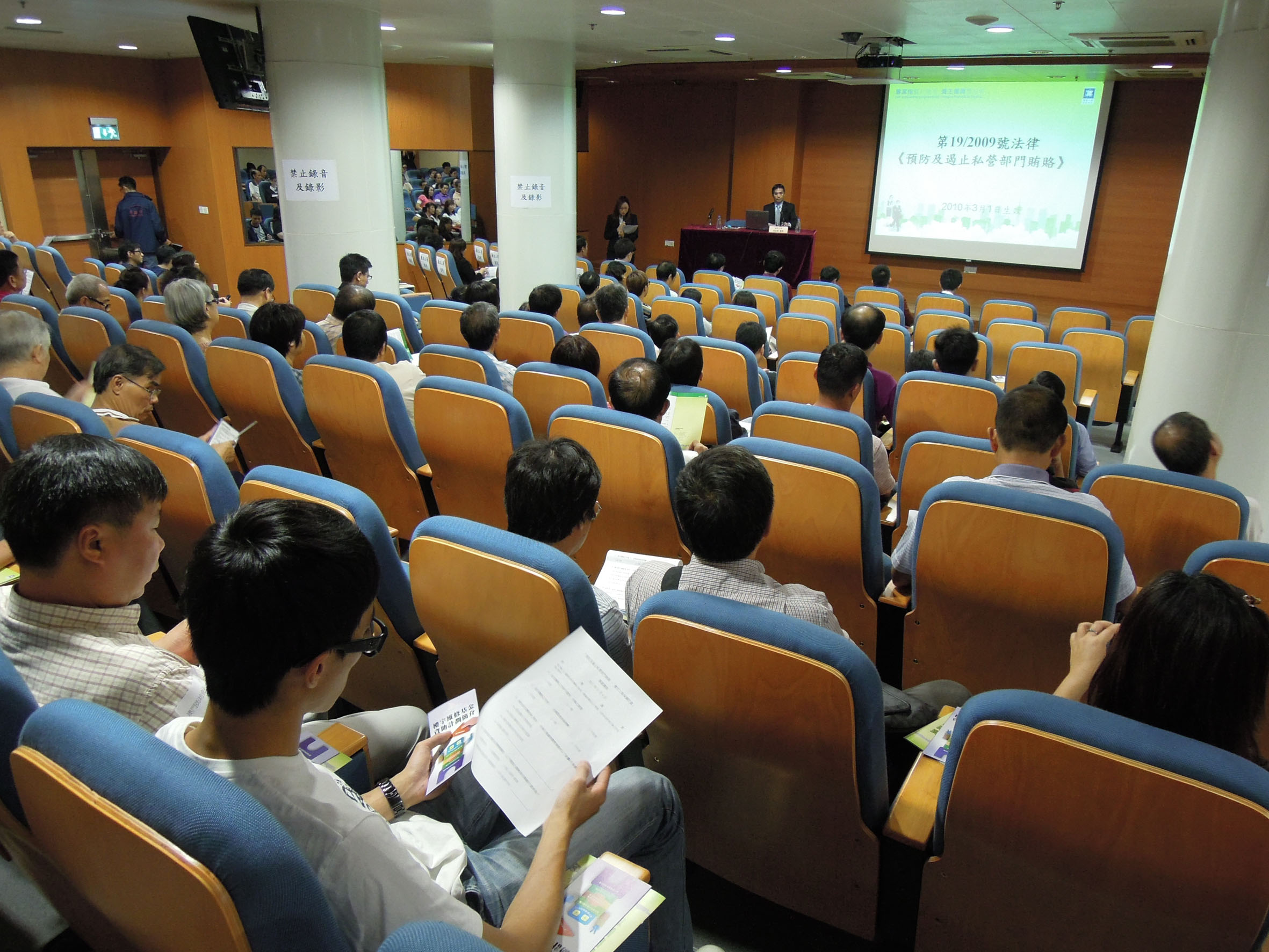 會上,廉政公署代表扼要地介紹了《預防及遏止私營部門賄賂法律》的主要內容,並結合樓宇管理的實務工作,深入剖析在樓宇維修工程採購過程中,包括工程前期的準備工作、招標、收標、評核標書、議價、合約條款、監察工作表現、更改或後加工程、驗收、付款等不同階段須注意的事項,呼籲樓宇管理委員會委員透過訂定廉潔指引,減低觸犯法律的風險,並即場解答與會者對於樓宇維修工程防貪工作的提問。