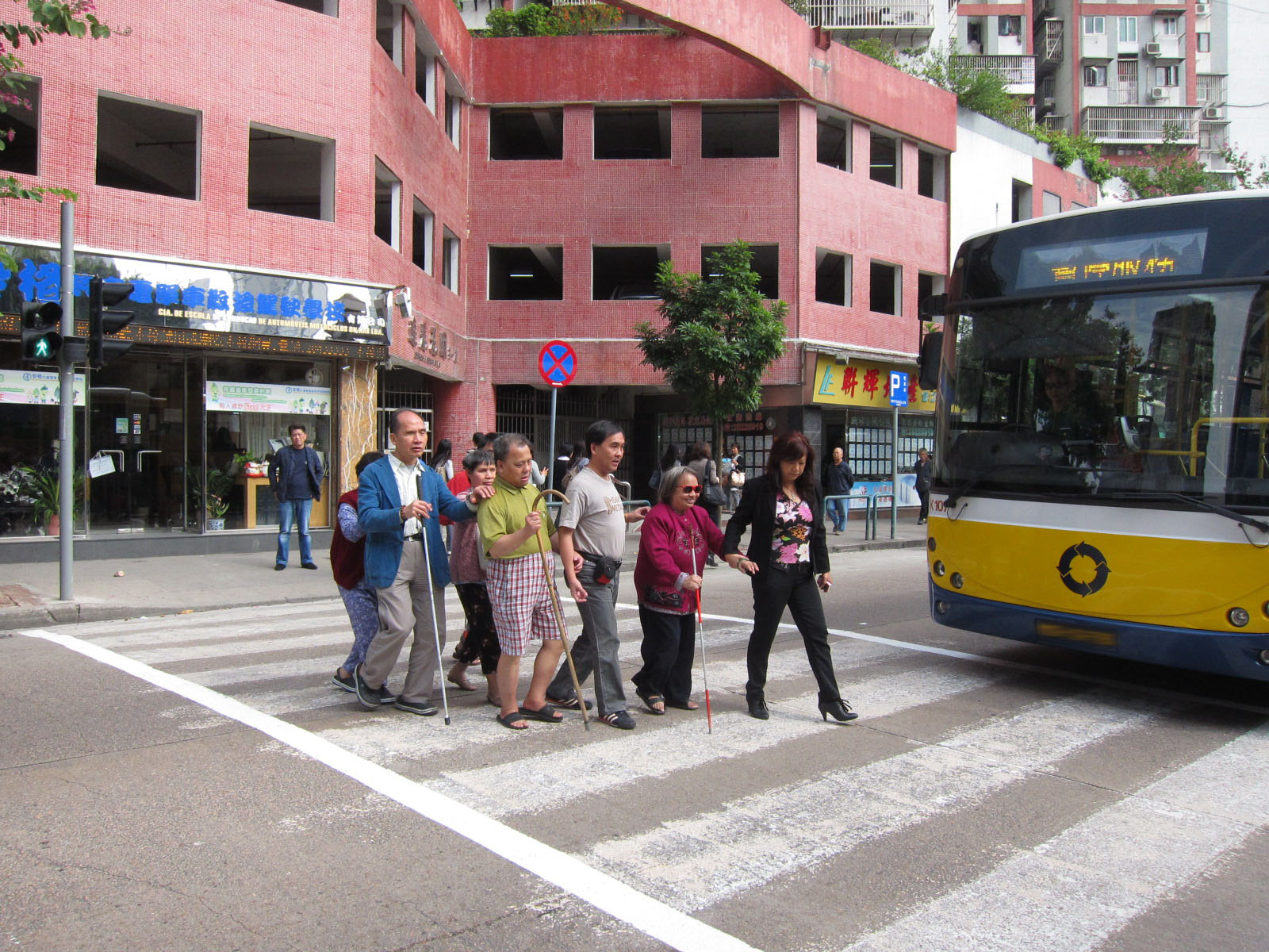 白朗古將軍大馬路南北路段將於周六(26日)正式開通,隨著道路的開通,未來青洲大馬路及白朗古將軍大馬路的車流及人流量必然大增,交通將更為繁忙,加上該區一帶有學校、老人院及盲人中心等,經常出現人車爭路等情況。為提高道路安全及完善該區道路網,交通事務局於現場增設交通燈並於昨日(24日)起啟用,藉以讓道路使用者提早適應。考慮到上述道路鄰近仁慈堂澳門盲人重建中心及該區不少視障人士居住及出行,故有關交通燈亦已安裝電子過路發聲裝置及震動器,用作提示視障人士正確的過路方向。為了解交通燈的行人配時及發聲裝置能否配合視障人士的過路需要,交通事務局昨日聯同仁慈堂盲人重建中心的會員,到現場實地了解交通燈的運作情況,並因應視障人士的實際需要,對交通燈的配時及發聲裝置的聲量等作出調節。