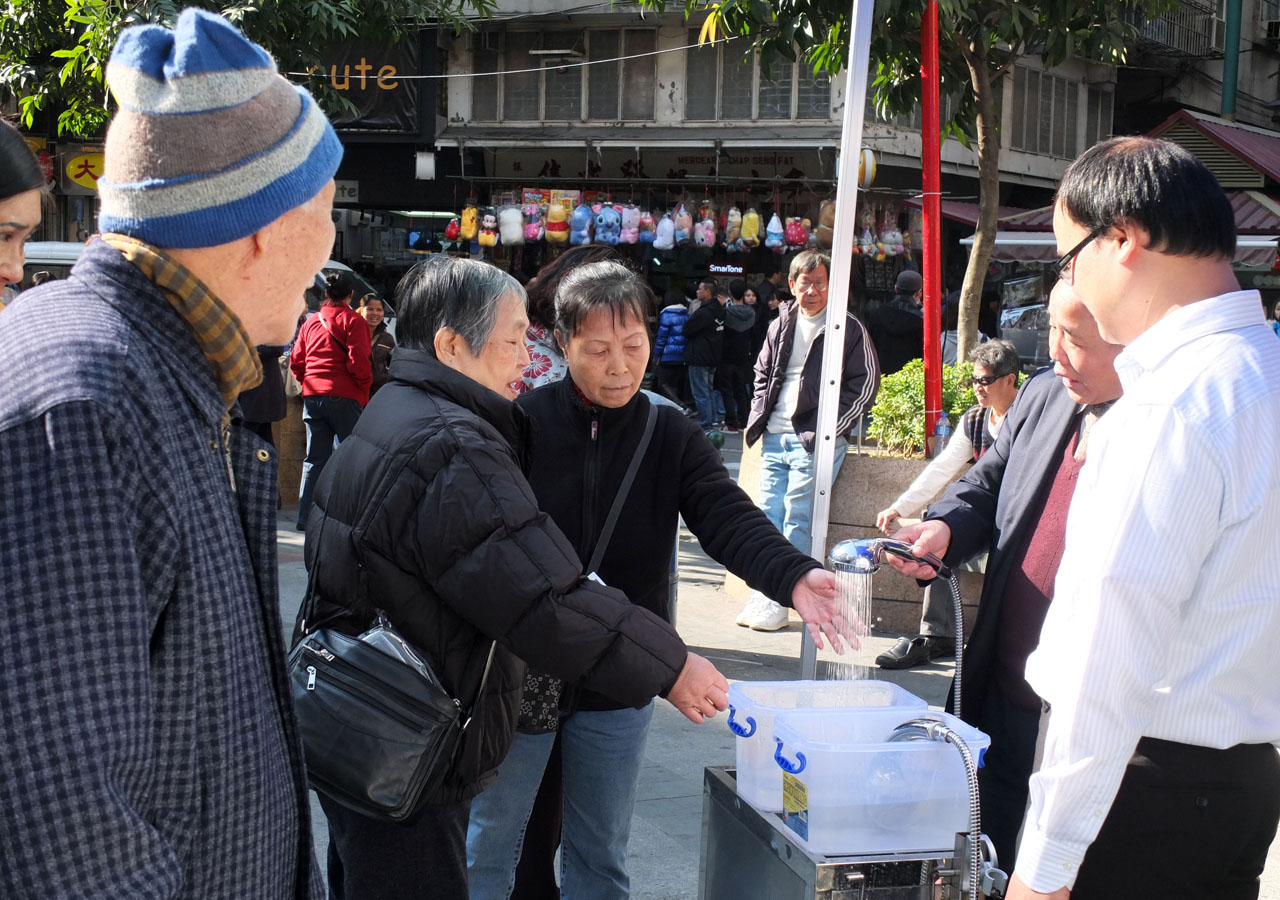 今日下午二時半至五時,小組在三盞燈圓形地舉辦節水活動,包括節水器具展覽,邀請了商戶展出市場上各種較常見的節水器具,更有專人講解和示範節水器具的安裝方法及展示節水效能,鼓勵市民使用節水器具,以提高節水器具在本澳的普及率;現場還設置了多個以節水為主題的攤位遊戲,參加遊戲的市民獲贈由小組送出的節水器具及精美紀念品,同場亦展出了水資源現況及節水方法等展板。
