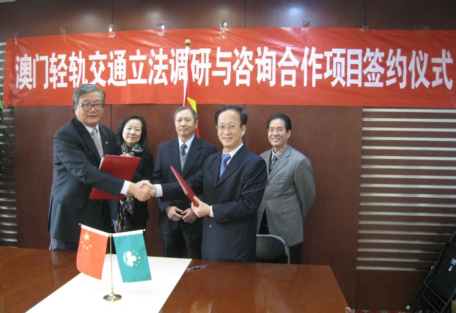 為加強本澳與內地在軌道交通法制上的銜接與合作,運輸基建辦公室在《澳門輕軌項目與內地建立技術援助合作備忘錄》框架下,與中國城市規劃設計研究院簽署《澳門輕軌交通立法調研與諮詢合作協議書》,落實輕軌法律法規的調研工作。合作協議不但加強兩地的軌道項目交流,也直接增加了本地學術單位參與輕軌項目的機會。