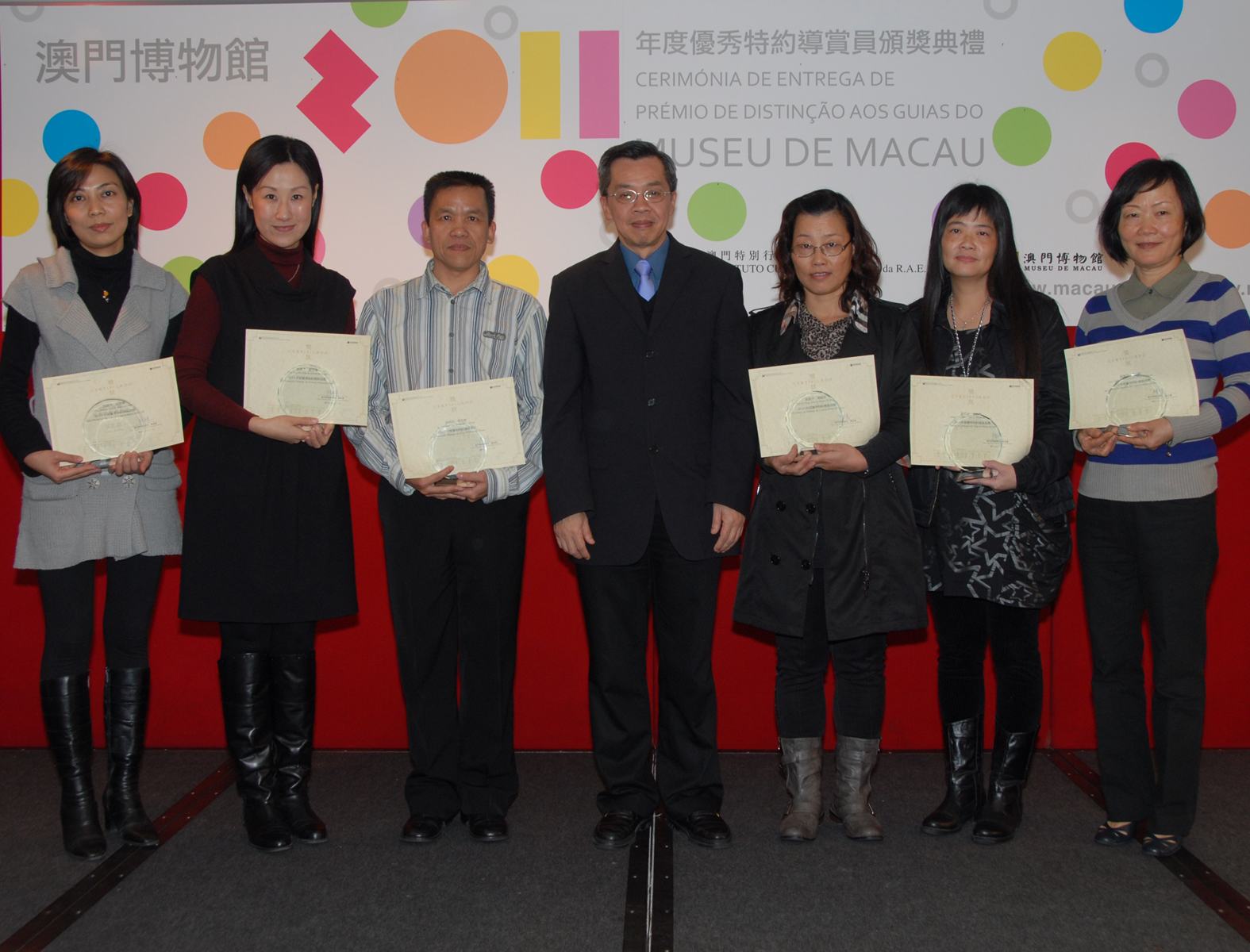 獲得“2011年度優秀特約導賞員”獎項者包括:李心怡、趙瑩瑞、黃小慧、侯凱娜、葛疏萍、葉志堅和馮紫雲;“2011年度特約導賞員熱誠服務獎”為:黃清麗、張蘊兒和劉善渝;“2011年度特約導賞員服務獎”則為:葛疏萍、侯凱娜、趙瑩瑞、李心怡、葉志堅、韋愛玲、劉健美、黃小慧、陳美凝、李綺嫦、黎彩玉、高婉芳、李潔萍、陳淑怡、馮婉華、楊婉如和馮紫雲。頒獎禮上,導賞員還欣賞了該館今年在導賞員工作期間所拍攝的錄影及照片的片段,大家互相交流,分享了從事導賞工作的心得,還進行了聯誼和抽獎活動,氣氛融洽熱鬧。同場還舉行了《天下為公──孫中山與澳門文物展》導賞培訓證書頒發儀式。