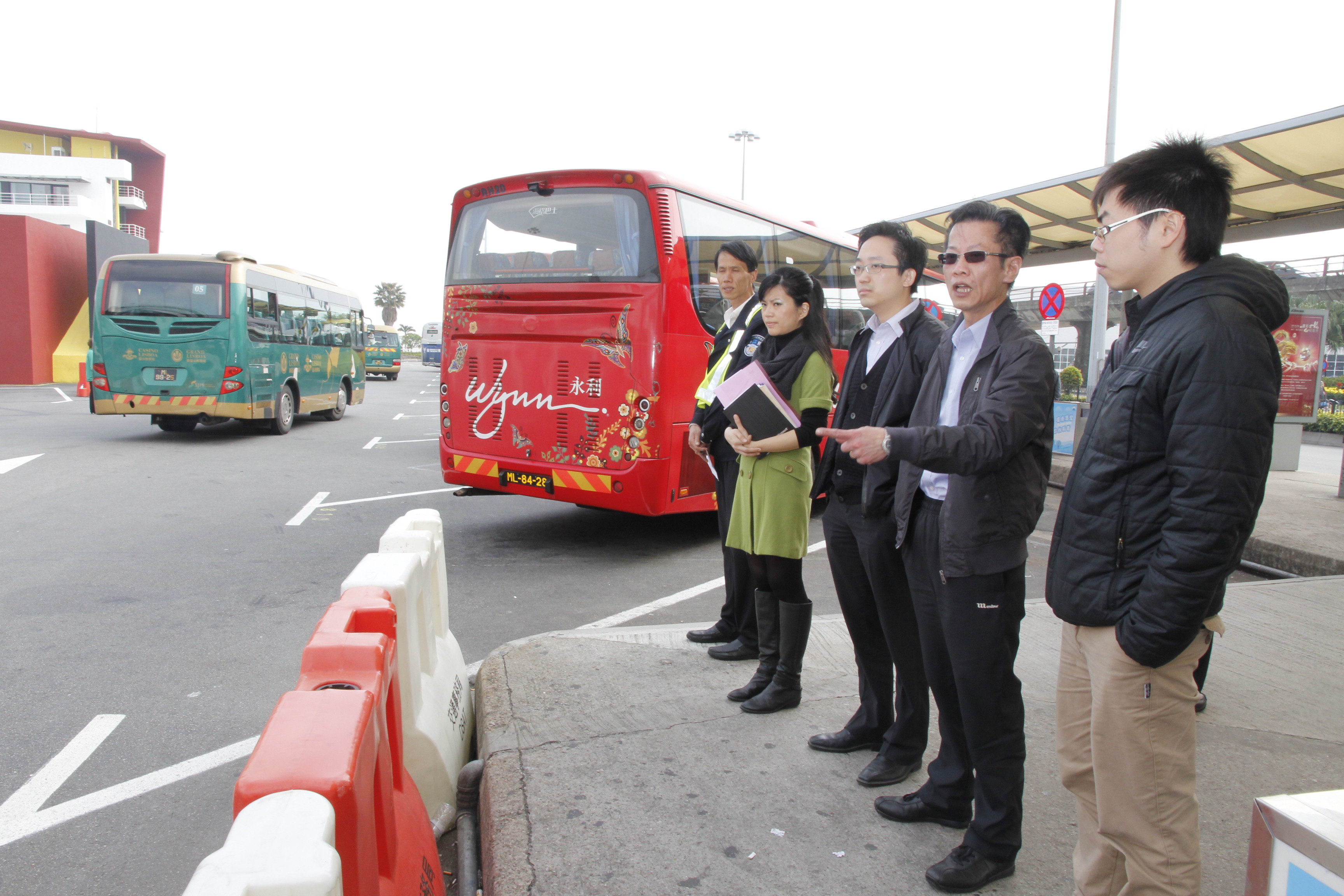 為優化外港碼頭之旅遊巴、酒店及娛樂場所客運專車之停車位置,加強規管車輛上落客及停車秩序,交通事務局於去年12月9日在海港前地泊車區引入措施,以優化現場的重型客車停泊秩序,措施實行以來,運作暢順。考慮到新春期間將有大量旅客經外港碼頭來澳,為做好接待工作,日前交通事務局交通管理廳廳長羅誠智一行,聯同部分旅遊業界代表前往現場實地視察,以進一步了解酒店及娛樂場業界在該處的營運狀況。經視察後,計劃於該處候客區內增設路緣高差提示線,提醒來往候客區的旅客注意安全;同時,亦會調整重型客車停泊區內的水馬位置,以配合酒店及娛樂場業界的實際運作需要,理順場內人流及車流動線配置。
