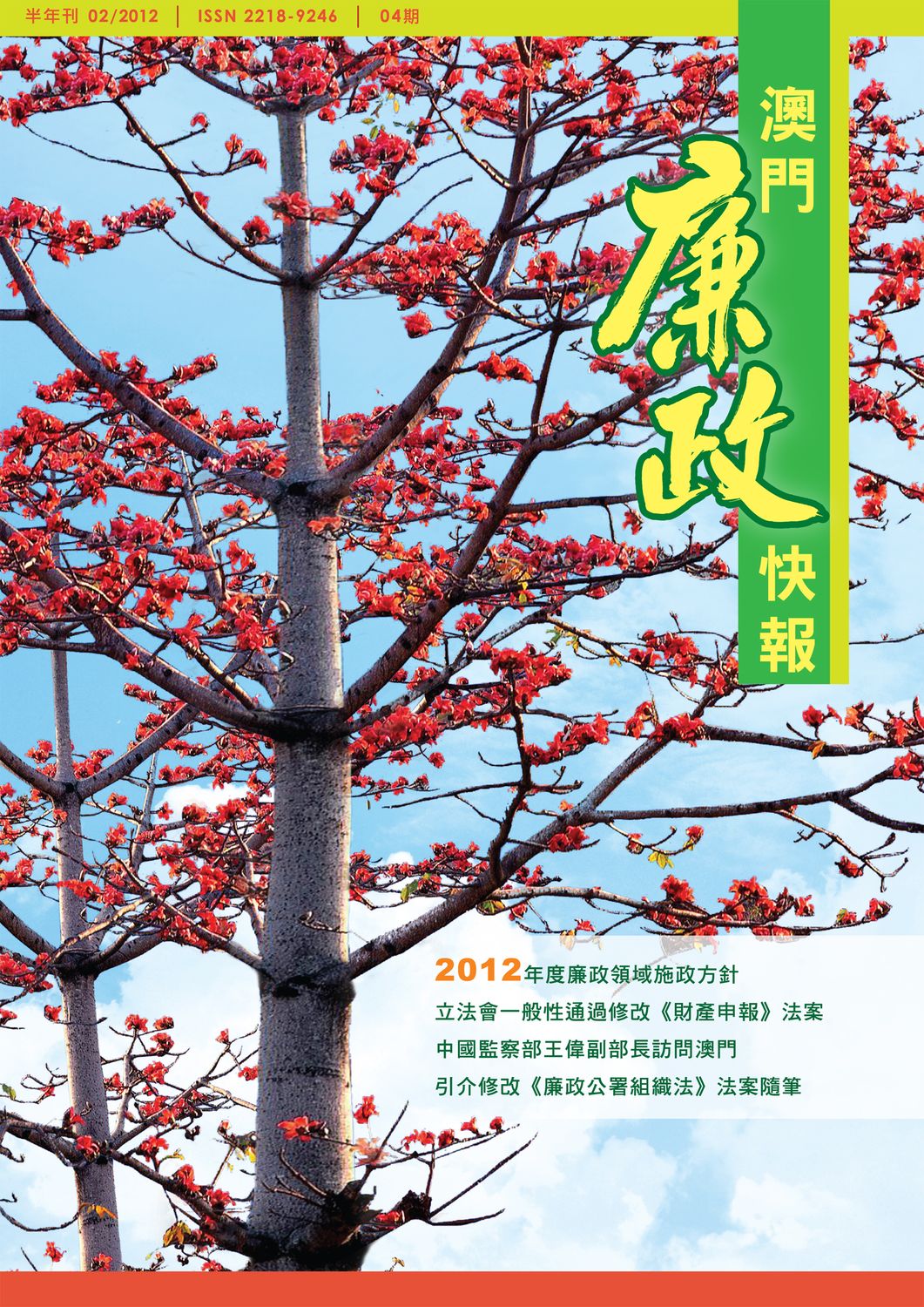 澳門廉政公署出版的半年刊《澳門廉政快報》第4期經已發行,市民可透過廉署網頁(www.ccac.org.mo)瀏覽有關內容,或於指定地點免費索取。