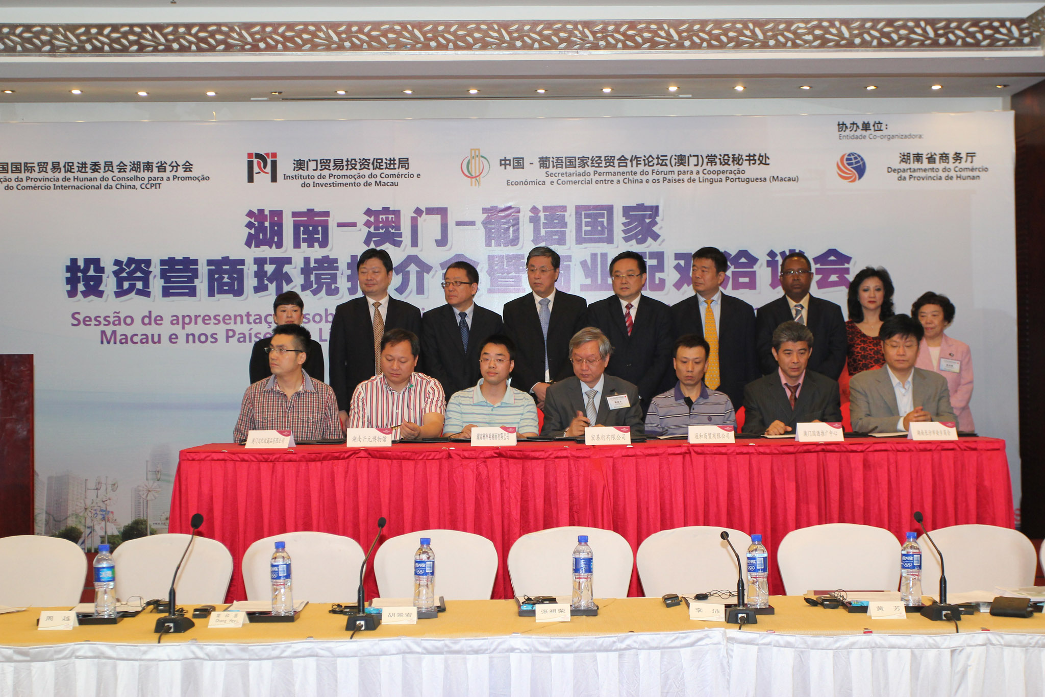 是次推介會共有超過100名來自包括湖南在內的中部省區、葡語國家及本澳等的經貿部門、商/協會代表和企業家參加,並促成150場洽談配對。而中葡論壇(澳門)常設秘書處參加的代表包括有:馬塞羅(MARCELO PEDRO D’ALMEIDA)副秘書長、行政辦公室主任張傑、安哥拉派駐代表若阿金‧迦瑪 (JOAQUIM GAMA)、佛得角派駐代表馬里奧‧維森特 (MARIO VICENTE)、幾內亞比紹派駐代表若奧‧戈麥斯(JOAO GOMES)、莫三比克派駐代表伊斯梅爾達‧派特裏西奧(ESMERALDA PATRICIO)、葡萄牙派駐代表Dr. Filipe Costa、巴西派駐代表馬昭雯(巴西駐港澳總領事館高級貿易官員)等。