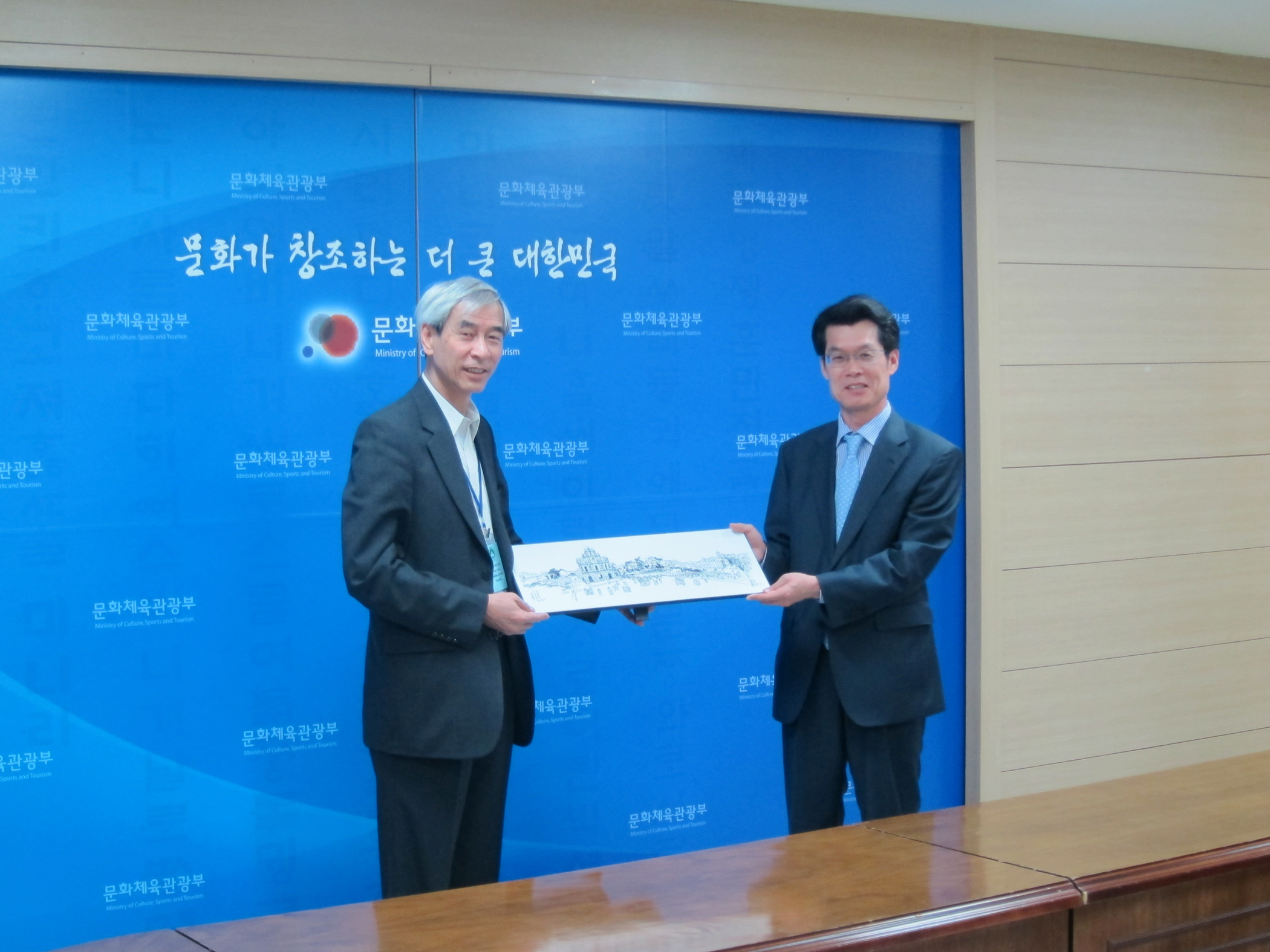 委員會一行在副主席梁慶庭的率領下,拜訪韓國文化體育觀光部文化產業政策科,負責人介紹了當地推動文化產業發展的工作。現時韓國文化產業的產值在世界上約佔第九位,當中的出版及廣播電視尤其突出。隨著科技發展,開發數碼化的文化內容產品成為趨勢。韓國現正努力建立比較成熟的生產、流通及運轉的體系,以迎合新的市場需求。未來也將繼續支持這方面的產品及相關技術的開發。