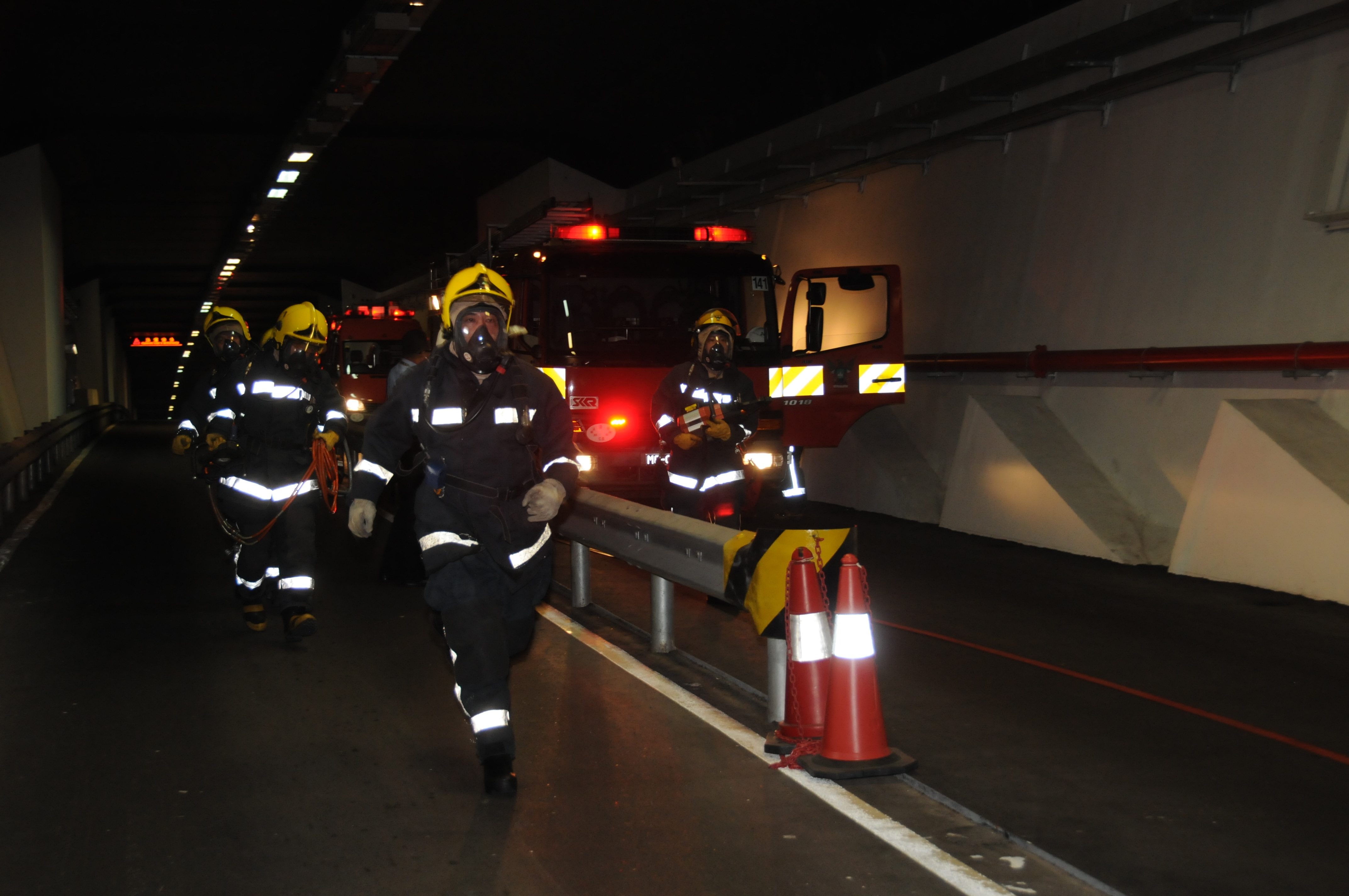 西灣大橋下層行車隧道交通意外火警拯救演習