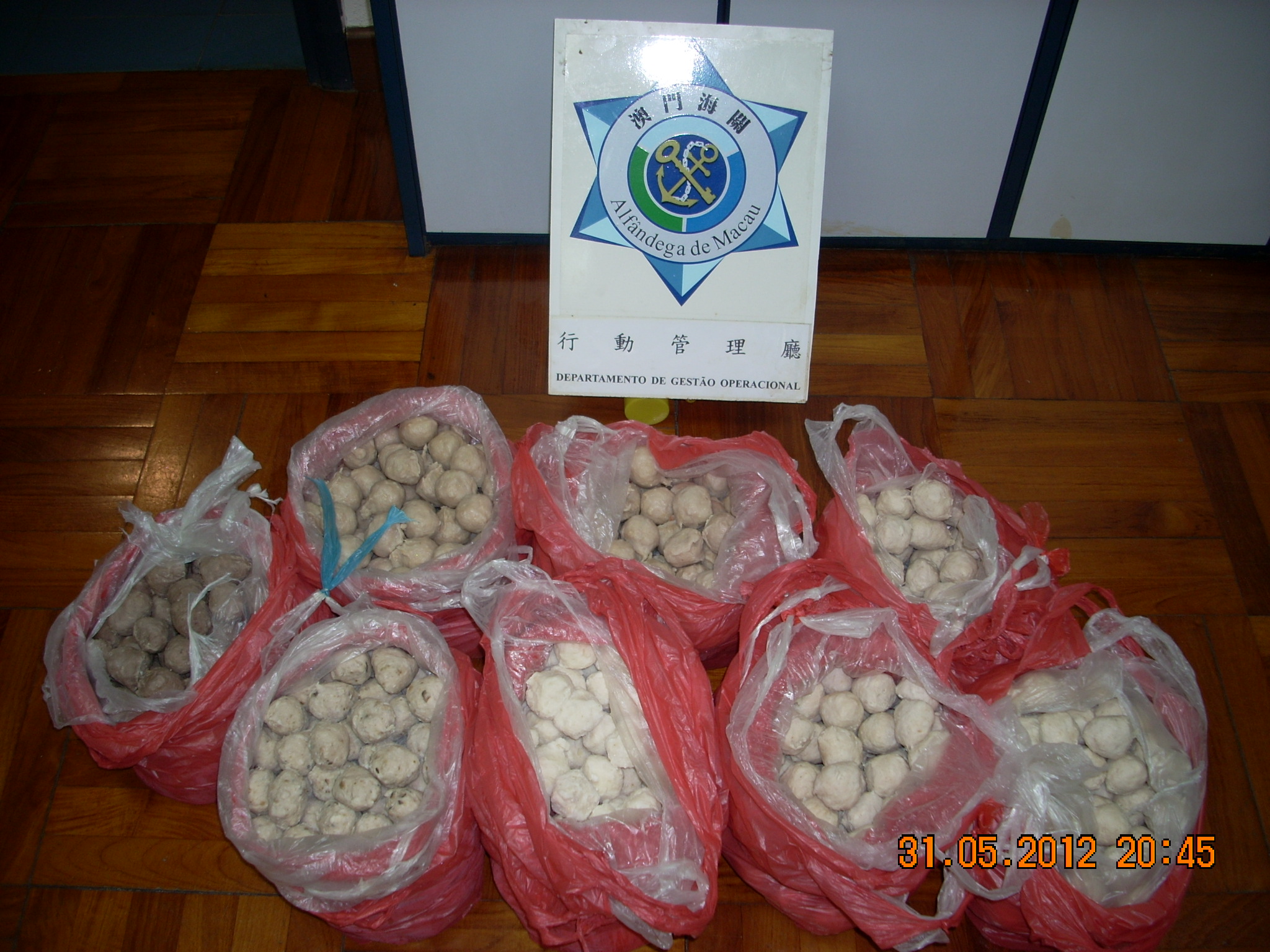 於5月31日,海關人員在關閘彩虹苑商場附近截獲一名正收集由水客帶回本澳的香煙的女子,行動中,共緝獲一萬三千四百支未完稅香煙。該名本澳女子聲稱為一名男子安排水客從內地免稅店帶香煙回澳,在澳門收集後交回該名男子。該名男子給其每條香煙澳門元8元作為酬勞,而她給予水客每條香煙澳門元5元作為帶工費。行動期間,海關人員另發現兩名水客携帶未經檢疫的肉類回澳,當她們將有關物品放置於台山華大新村附近一店舖門前,海關人員採取行動,共檢獲30公斤肉丸。該兩名水客聲稱,這批肉丸為一名男子從內地帶回澳,放於上述地點後,該名男子會自行取回,每袋可獲澳門元五元作為帶工費。