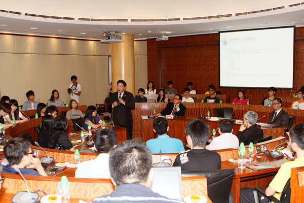 廉政公署宣傳教育處處長王智豪及澳大校友會會員大會主席區秉光則分別以“誠信品格,人所共求”及“或躍在淵-人生的粹練”為題,引用實例、易經、孟語、論語等,以深入淺出的方式與學生分享品德操守對人生的深遠影響。