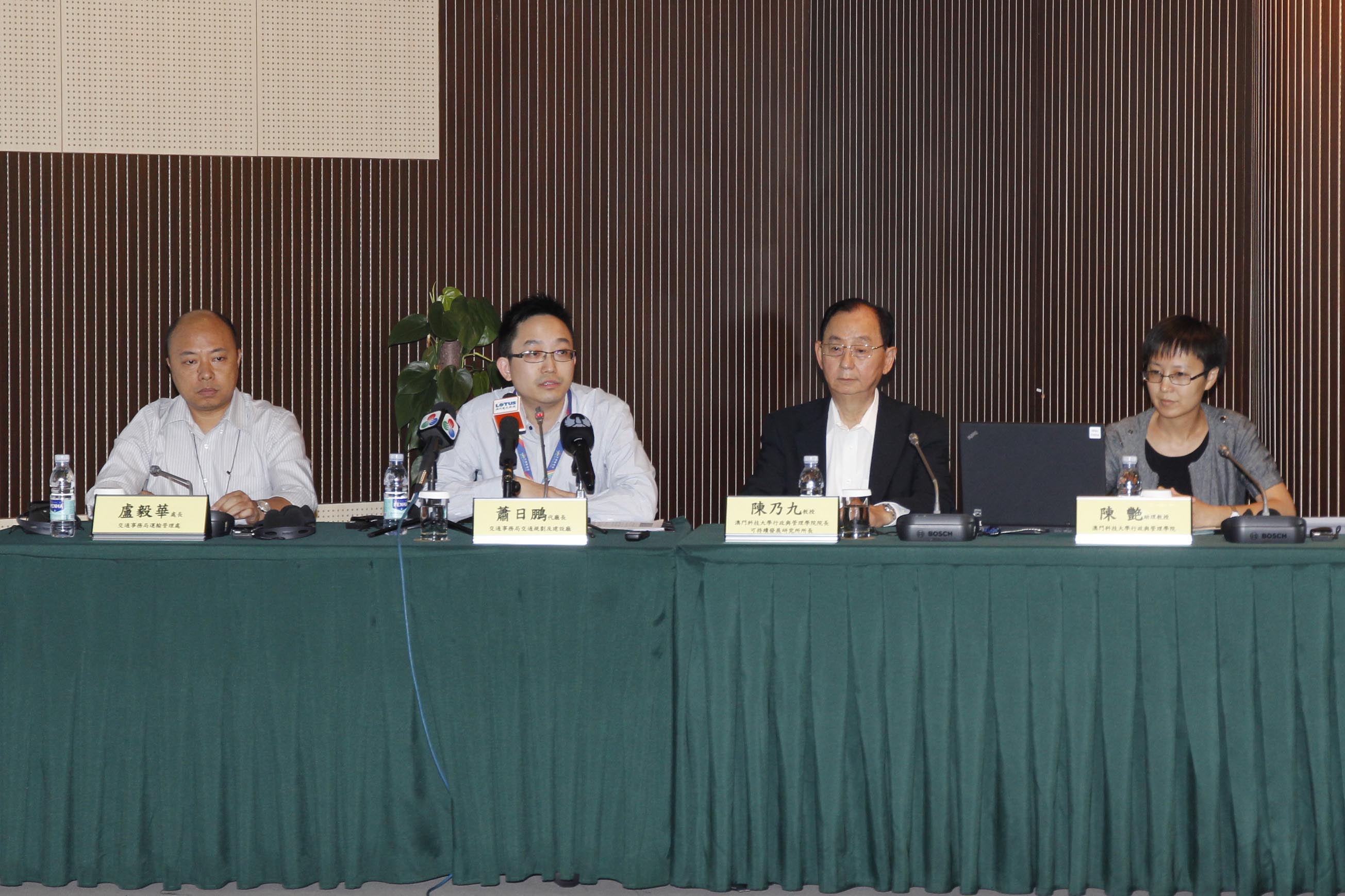 交通事務局與負責是次調查工作的澳門科技大學可持續發展研究所舉行新聞發佈會,交通事務局交通規劃及建設廳代廳長蕭日鵬、運輸管理處處長盧毅華、澳門科技大學行政與管理學院院長兼可持續發展研究所所長陳乃九教授及澳門科技大學行政與管理學院助理教授陳艷出席,公佈於今年1月開展的「湖畔大廈經屋居民出行調查」結果摘要。是次調查結合氹仔湖畔大廈的預配工作,針對獲甄選家團展開調查訪問,以收集有關家團的交通出行特性資料,作為湖畔大廈周邊交通規劃工作的重要參考和依據。