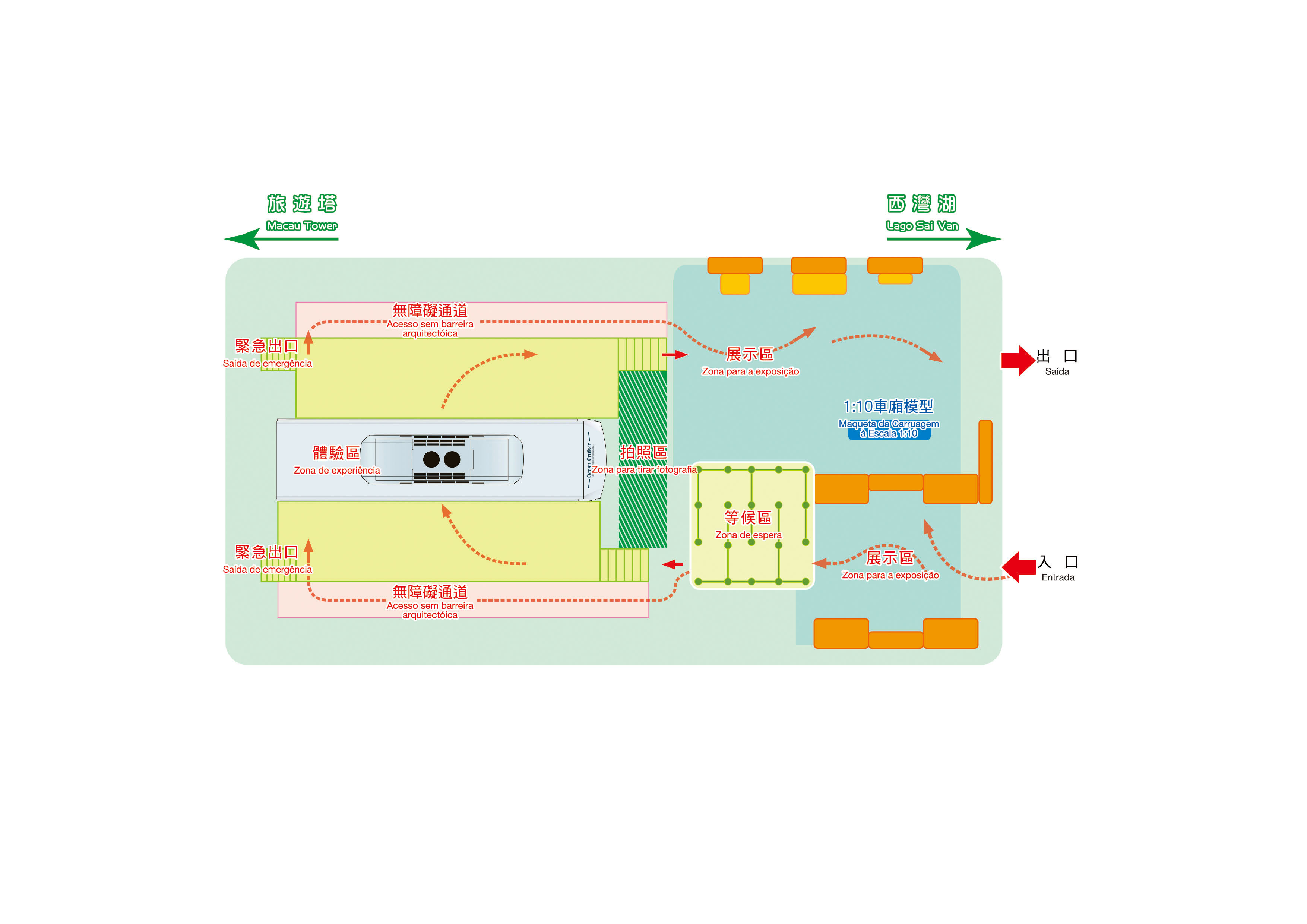 為讓居民在輕軌系統啟用前親身感受“濱海巡航”列車的設計特點,並聽取巿民對車廂的意見,運輸基建辦公室要求三菱重工特別製造1:1車廂模型,並連同三件列車配件,包括:橡膠輪胎、車廂連接器以及供電軌等,專程由日本運送至澳門作公開展示。