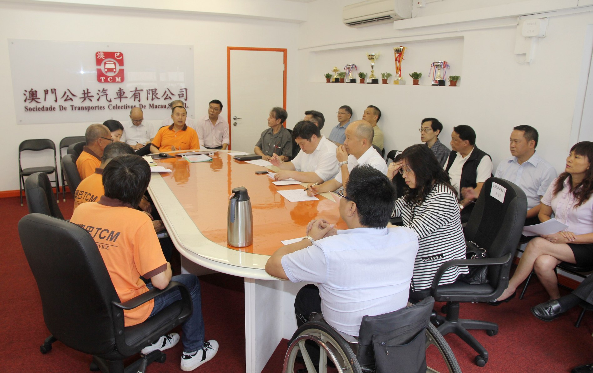繼早前參觀澳門新福利公共汽車有限公司,交諮會委員一行十多人日前在交通事務局局長汪雲、交通管理廳廳長羅誠智等陪同下,分別前往澳門公共汽車有限公司及維澳蓮運公共運輸股份有限公司參觀,兩間巴士公司管理層向委員簡述了公司的人員狀況、車輛管理、巴士營運及各項培訓工作等,雙方亦就購置天然氣巴士、優化巴士無障礙設施、巴士司機人資緊張等問題作深入交流。及後,交諮會一行還參觀了巴士維修廠房,瞭解巴士日常的維修、保養及各項相關設備。