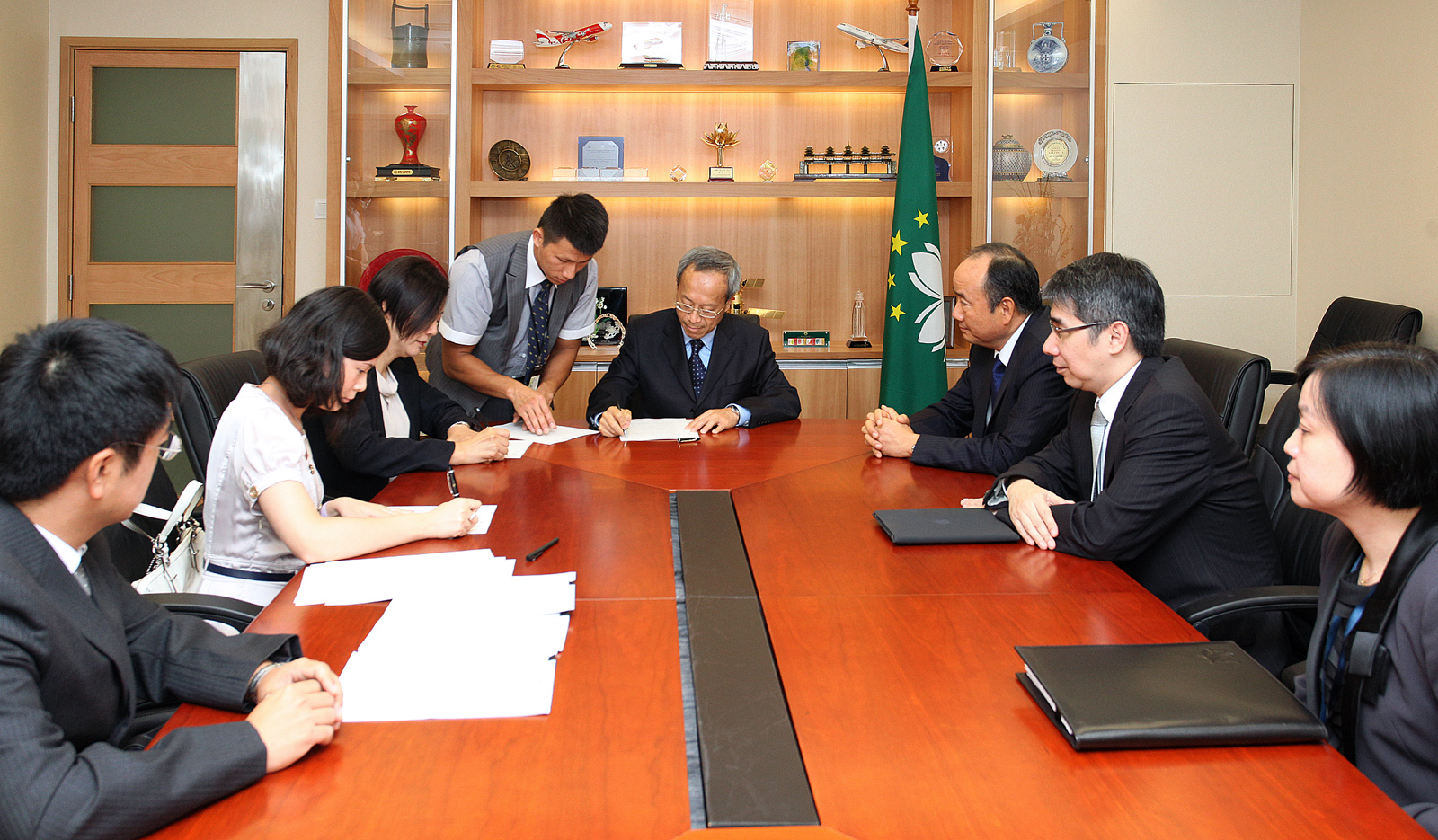 簽署儀式今日中午在運輸工務司司長辦公室進行,由運輸工務司司長劉仕堯與南光天然氣有限公司總經理蔡堅代表雙方在合同上簽署。南光集團董事長許開程、能源業發展辦公室主任山禮度、運輸工務司長辦公室顧問黃玉葉等參加了簽署儀式。《天然氣分配公共服務》是透過高壓或低壓分配網,向客戶分配及銷售天然氣,包括直接向客戶供應天然氣,或經特區預先許可透過儲氣瓶系統、或其他管道式燃氣等技術供氣。客戶是指﹕用戶(商業、工業及服務業)、公共及公益用戶、燃氣設施營運商及燃料加注站營運商四類。其中,燃氣設施營運商向住宅用戶供氣及實施收費。