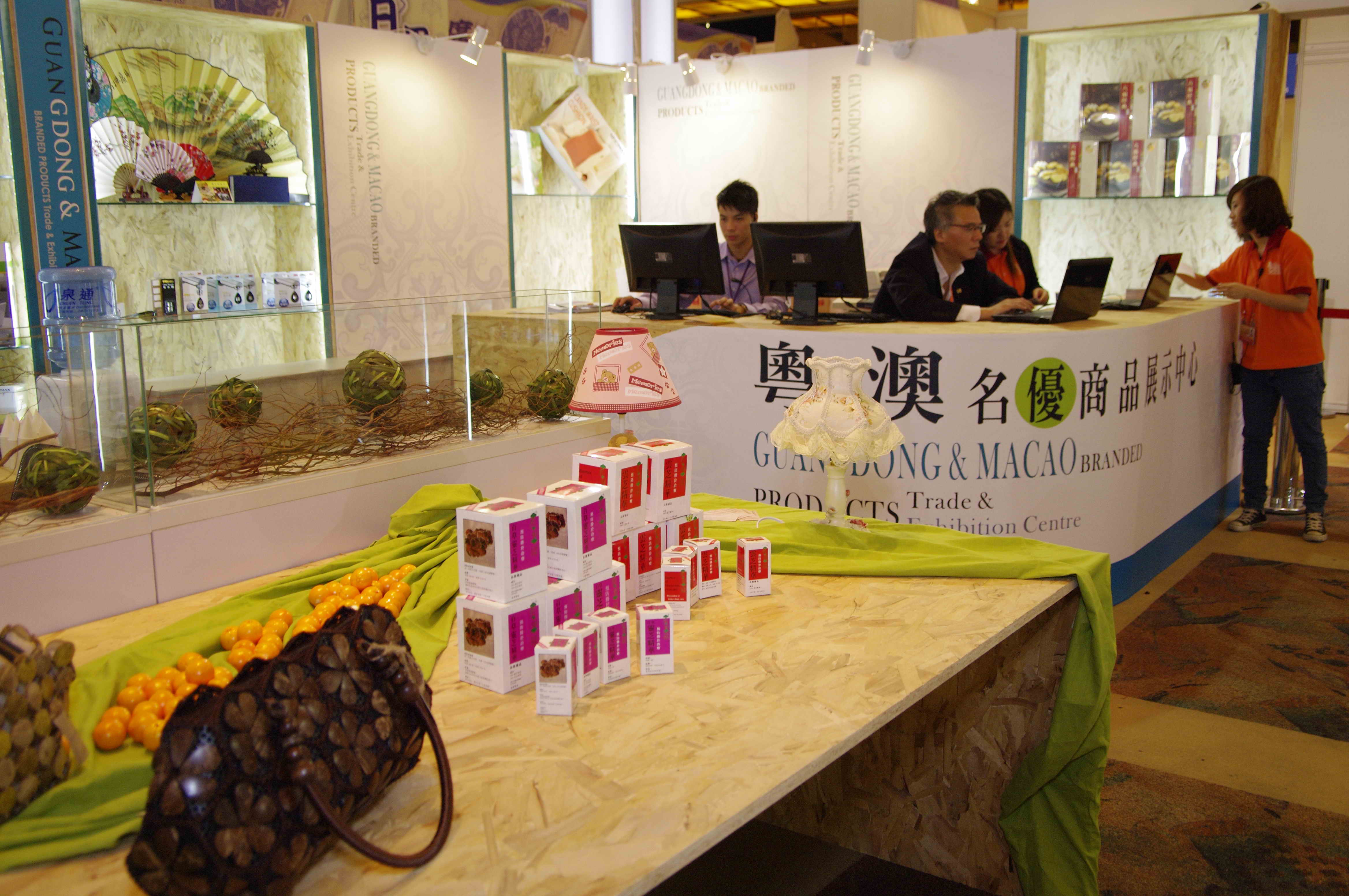 今年首辦「粵澳名優商品展示中心」,為各參展商和貿易買家打造了一個良好的商務配對服務平台。中心內展示了參展商最優質的三項商品,除了展示樣品之外,場內亦有專人為買家詳細介紹相關產品及聯絡相關參展商,並提供洽談場地和代辦貨品快遞等服務。售賣葡色罐頭食品的朱先生今年是首次參加展銷,他表示,展示中心位處人多而且當眼的位置,經過的參會人士特別容易注意到有關產品,使產品的曝光率提高,同時,展示中心集中了各商家的優秀展品,方便買家選購。而售賣澳門手工藝品的冼小姐認為,透過「粵澳名優商品展示中心」可讓參觀者快速了解各個參展商的商品,今天早上已經有來自內地、甚至是葡國和安哥拉等貿易買家期望與她合作,並進行洽談。