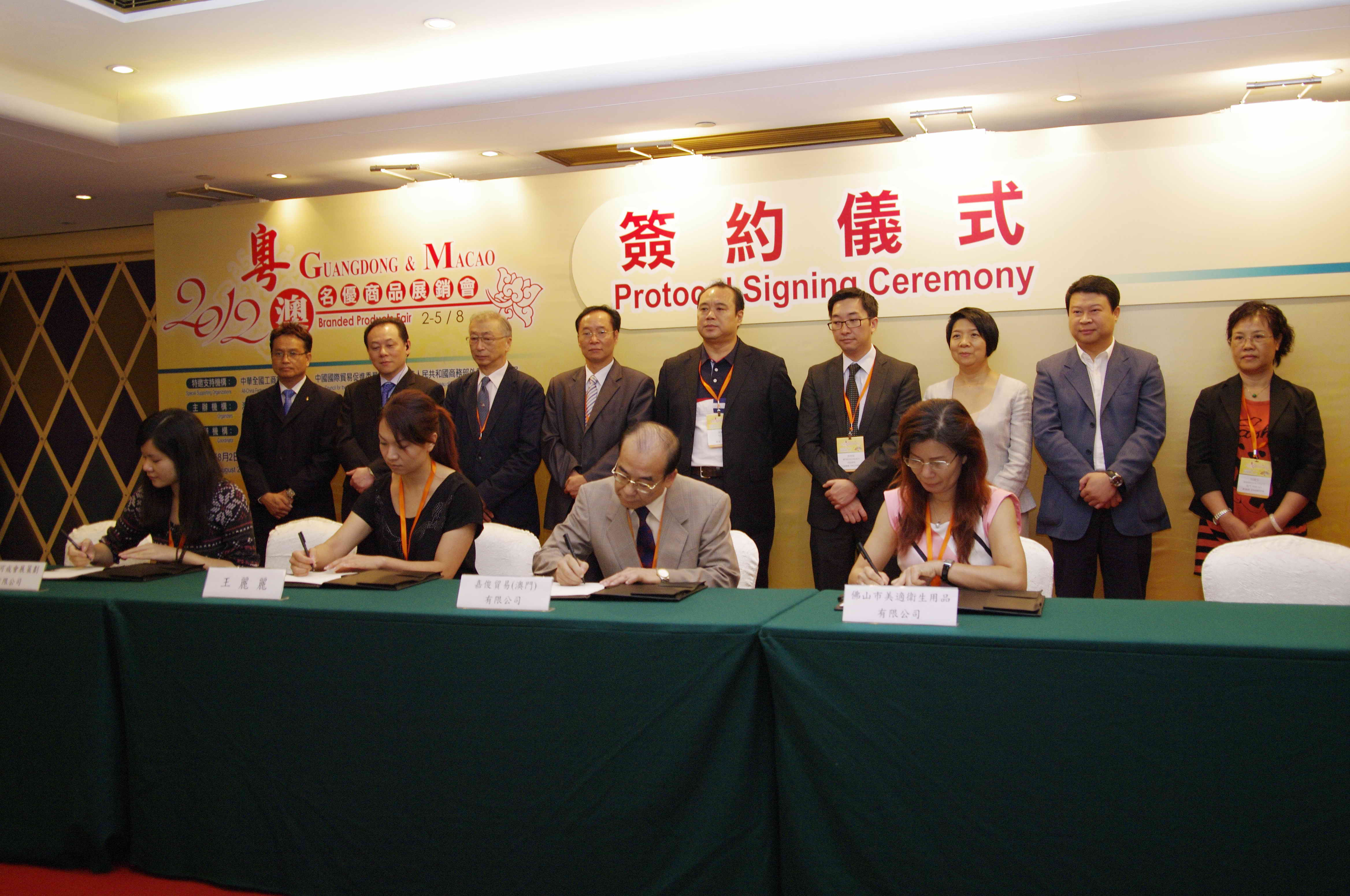 大會今天繼續推動參展企業參加業務洽談配對,成功促成256場商業配對。另外,促成了4份合作項目簽約,簽約方來自澳門、廣州、珠海和佛山,項目內容涉及皮具產品及紡織品零售批發、在澳門代理內地的衛生用品及銷售特式食品。