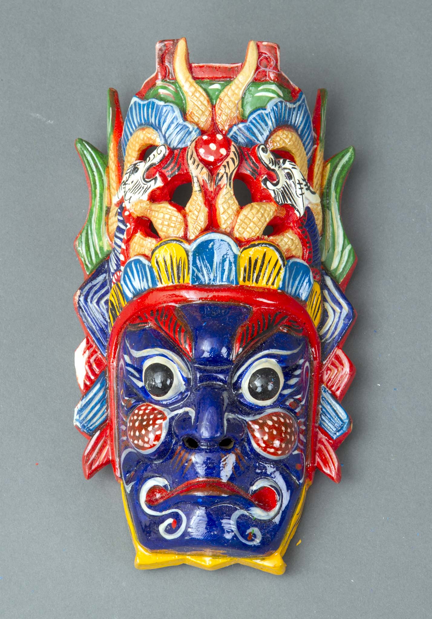 安順地戲,俗稱“跳神”,是貴州安順獨有的一種頭戴木刻假面的民間戲劇,而安順木雕——面具 (臉子)就是伴隨着地戲而產生的,以演繹《三國》、《說唐》、《岳傳》等眾多劇目的人物而成為歷史傳承的文化符號,其雕刻技藝手法誇張,形成了獨特的安順民間雕刻藝術風格。來澳工藝家黎紅秀及楊正洪均為當地著名的木雕工藝家,秉承木雕面具藝術的傳統技藝,工藝精湛,曾多次赴全國各地參加比賽獲取殊榮。