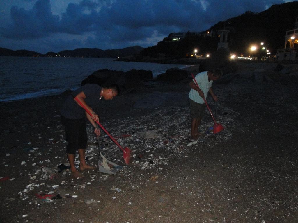 按目前情況,由於海灘出現的膠粒數量較少,暫時不會對一般泳客在進行水上活動構成影響,惟帶同兒童嬉水的市民則需特別留意泳灘內出現膠粒的情況。港務局已派員加班加點在海灘清理膠粒,並會繼續密切監察兩個海灘的情況。局方亦設有恆常的機制,從多方面監察日常本澳的海面情況。在本澳的海灘、碼頭和港池等設施均設有巡查人員監察海面情況,同時亦設有海上清潔監督人員,監督海上垃圾清潔公司的工作和巡視本澳海面的漂浮垃圾的情況。