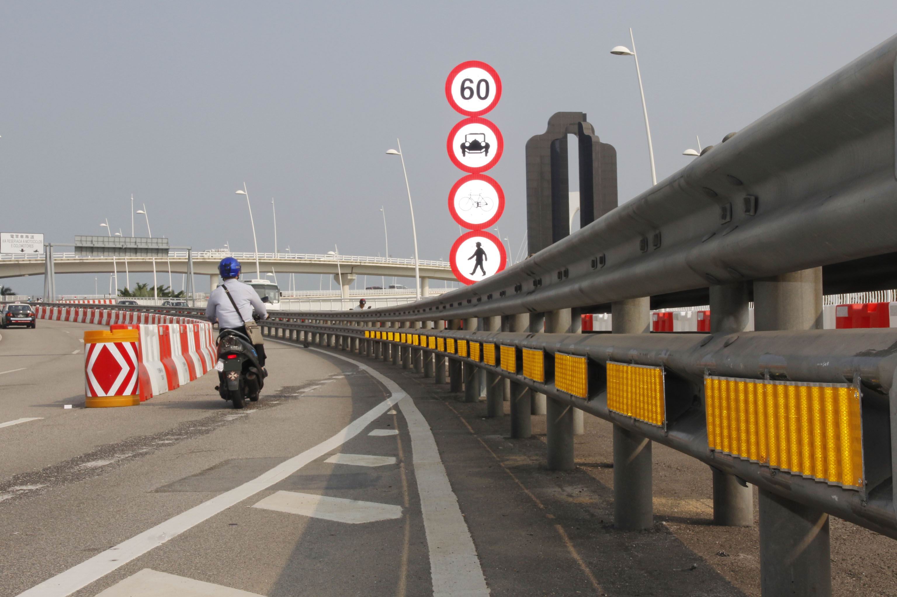 西灣大橋電單車專道已於本月19日開始實施,交通事務局接獲駕駛者反映,希望在橋面增加指示牌,有見及此,局方近日已先後於橋面靠近電單車專道的一則加裝每小時最高限速60公里之標誌牌,以及於媽閣電單車專道的入口位置的護欄安裝反光標誌,以加強對駕駛者的提示。
